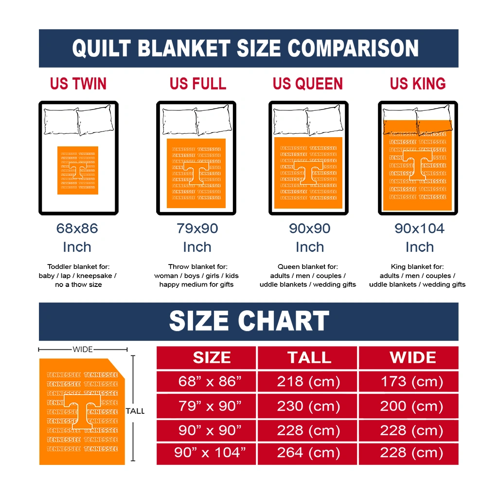Wrap yourself in warmth and pride with the Tennessee Volunteers Bold Red Orange Quilt Blanket from the Tennessee Volunteers Blankets collection at Yes That Blanket. Made from 100% premium quilting-weight polyester blended with a touch of microfiber, this quilt offers a smooth, soft finish you’ll love. Choose between two quilting styles—Stipple or Diagonal—and enjoy the comfort of a cotton-filled layer inside that adds extra coziness for every season. The border is available in classic black or white, giving your design a clean, timeless edge.
