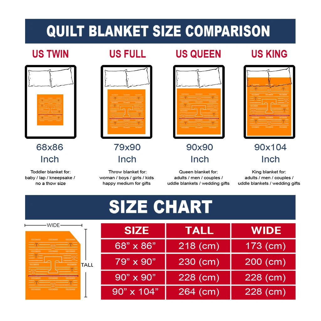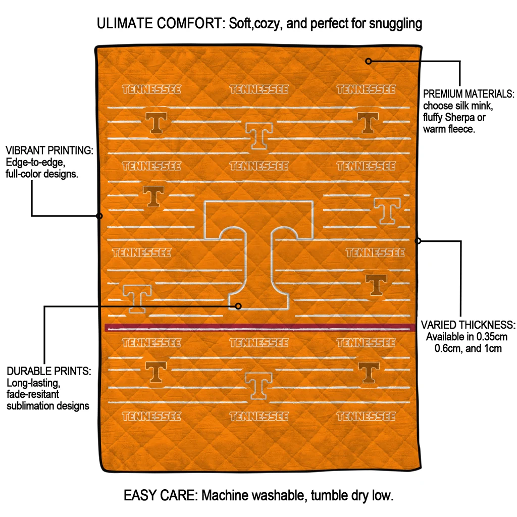 Wrap yourself in warmth and pride with the Tennessee Volunteers Handdrawn Stripes Orange Quilt Blanket from the Tennessee Volunteers Blankets collection at Yes That Blanket. Made from 100% premium quilting-weight polyester blended with a touch of microfiber, this quilt offers a smooth, soft finish you’ll love. Choose between two quilting styles—Stipple or Diagonal—and enjoy the comfort of a cotton-filled layer inside that adds extra coziness for every season. The border is available in classic black or white, giving your design a clean, timeless edge.
