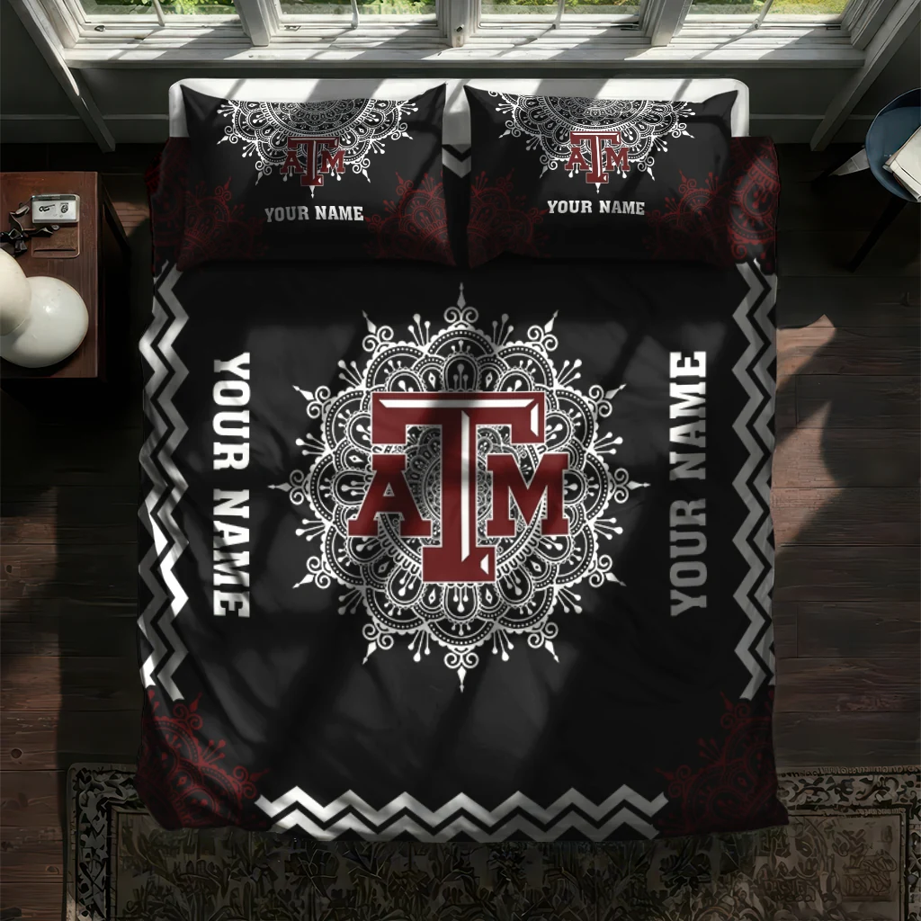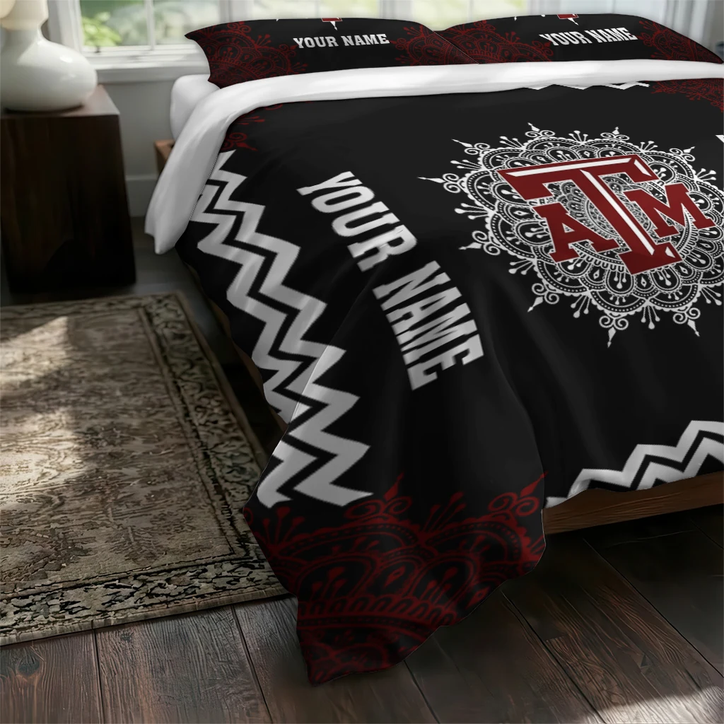 Texas A&M Aggies Bedding Set – Customized Mandala Lacework Black White
