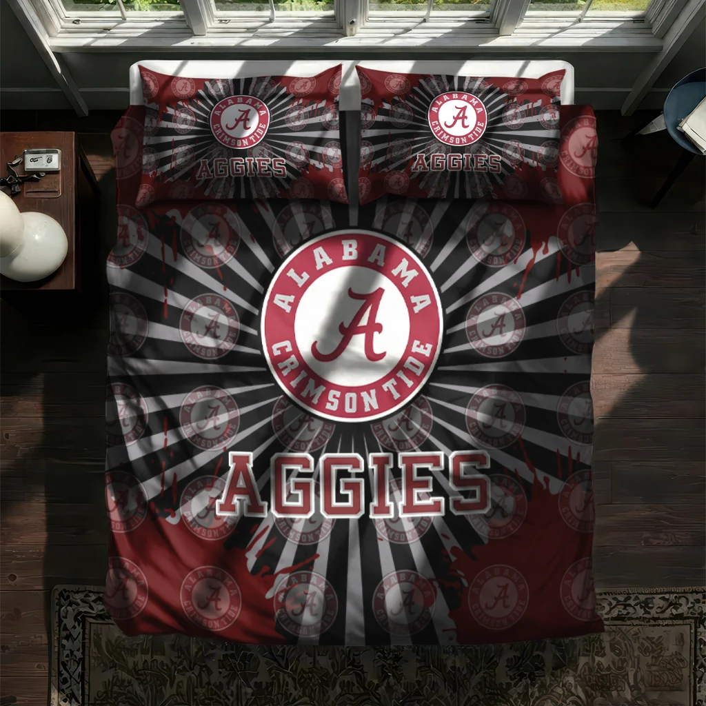 Texas A&M Aggies Bedding Set – Sunburst Splatter Red Black