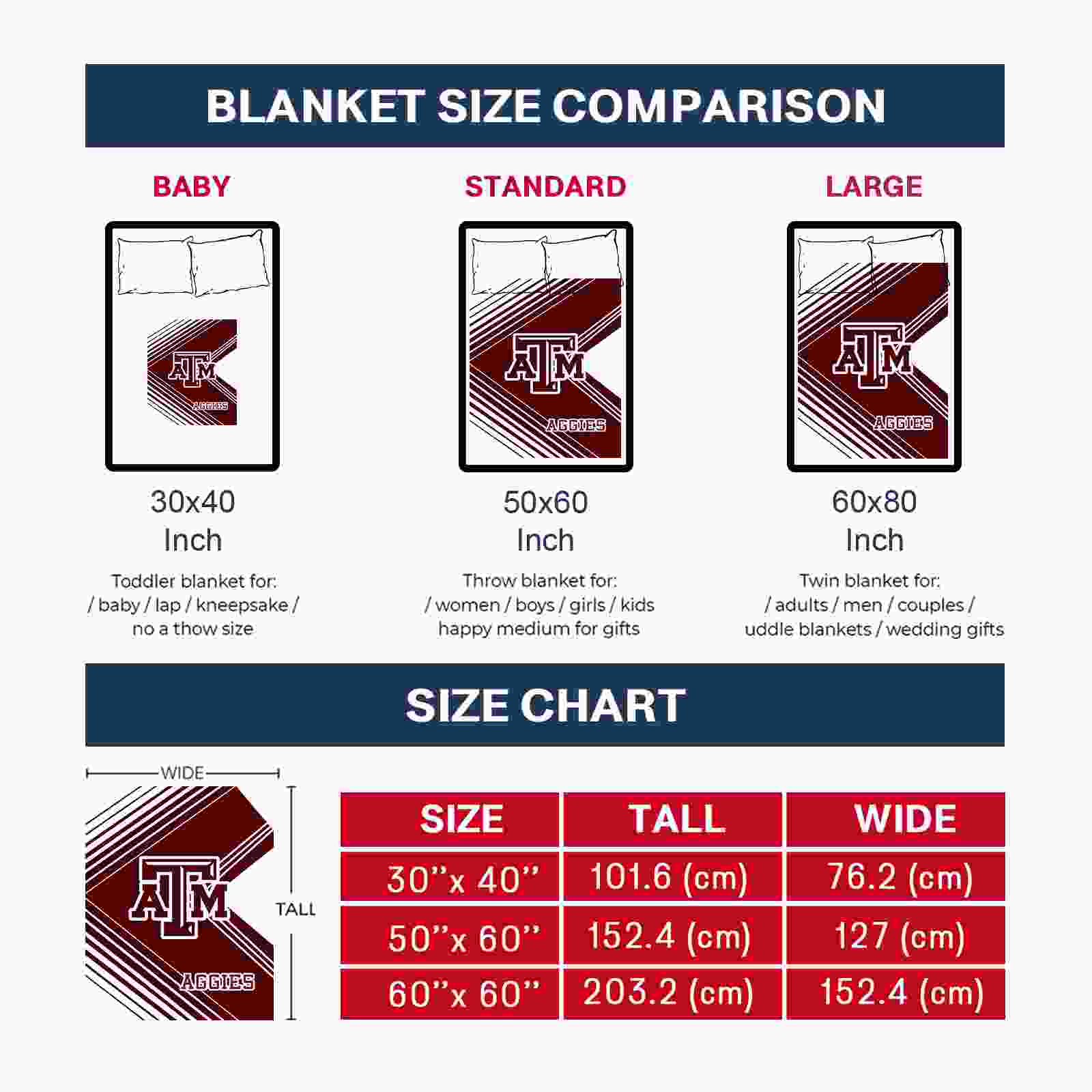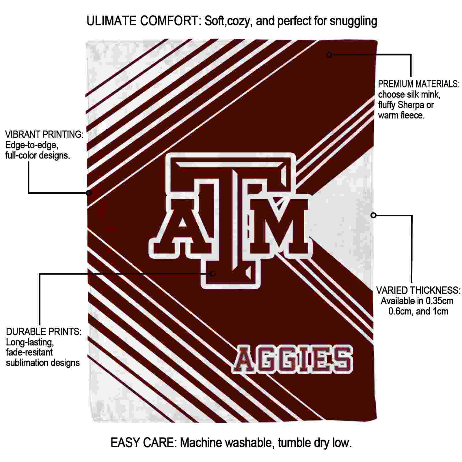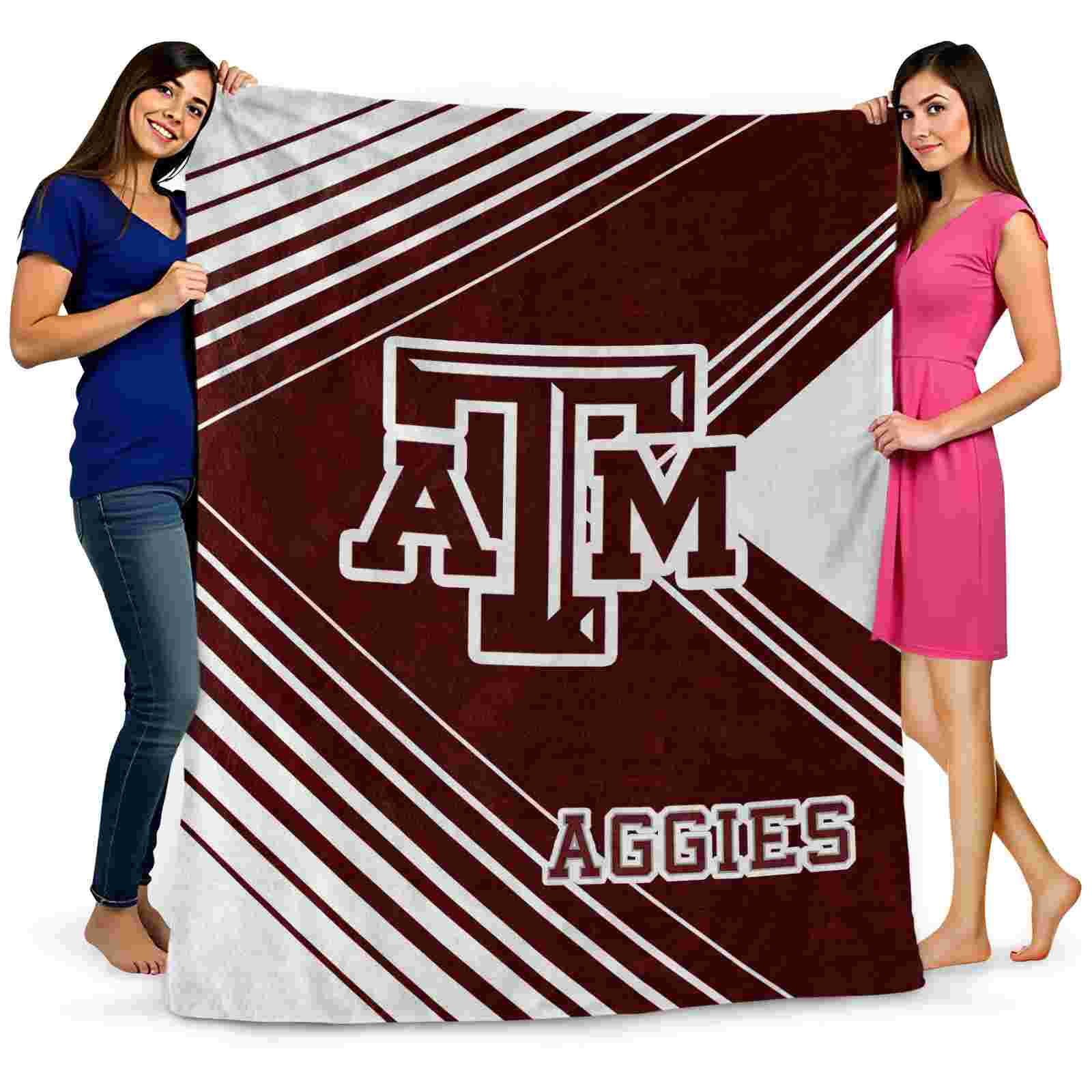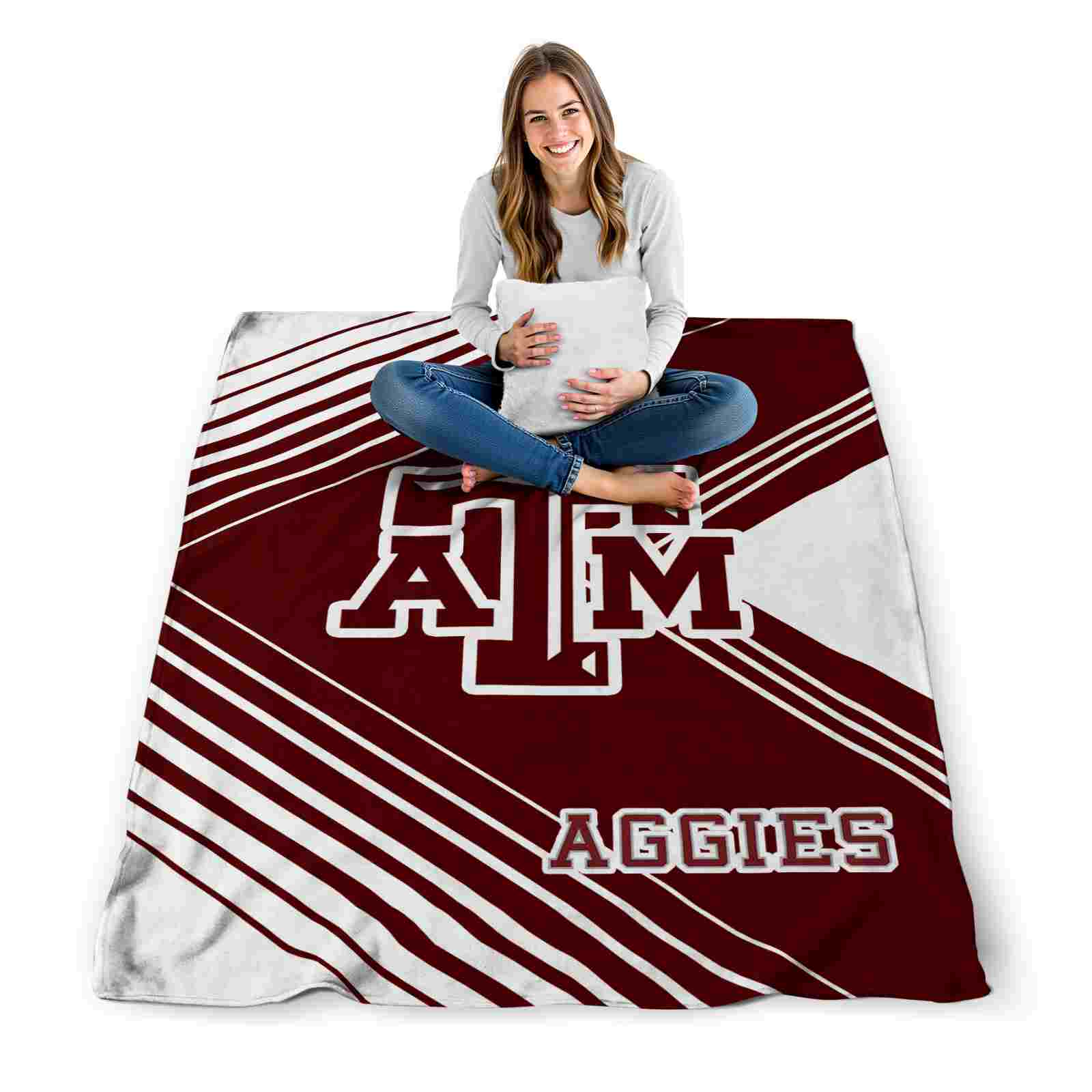 Without a doubt, the Texas A&M Aggies Diagonal Stripes Maroon Blanket from Texas A&M Aggies Blankets collection is offering true fans a chance to showcase passion in a cool way. Personalize it with your favorite team's logo or a meaningful name to make it uniquely yours. Isn't that great? The full-color print ensures vibrant, edge-to-edge designs, bringing your sports enthusiasm to life!