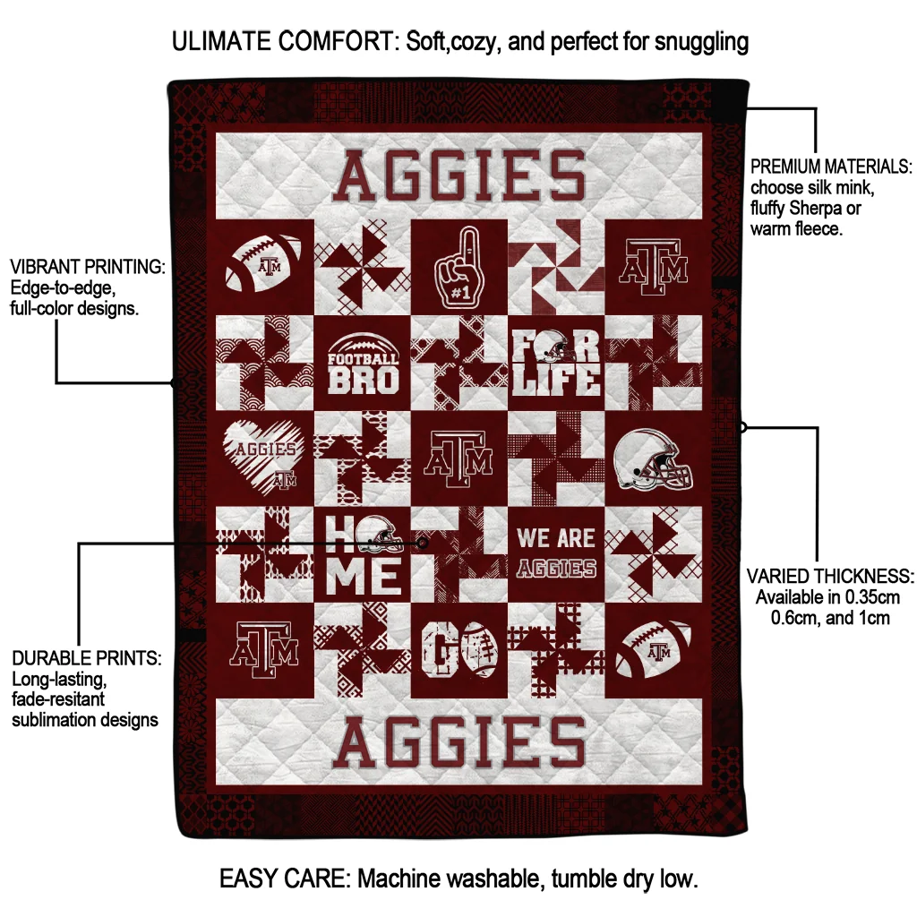 Wrap yourself in warmth and pride with the Texas A&M Aggies Helmet Heart Maroon Quilt Blanket from the Texas A&M Aggies Blankets collection at Yes That Blanket. Made from 100% premium quilting-weight polyester blended with a touch of microfiber, this quilt offers a smooth, soft finish you’ll love. Choose between two quilting styles—Stipple or Diagonal—and enjoy the comfort of a cotton-filled layer inside that adds extra coziness for every season. The border is available in classic black or white, giving your design a clean, timeless edge.