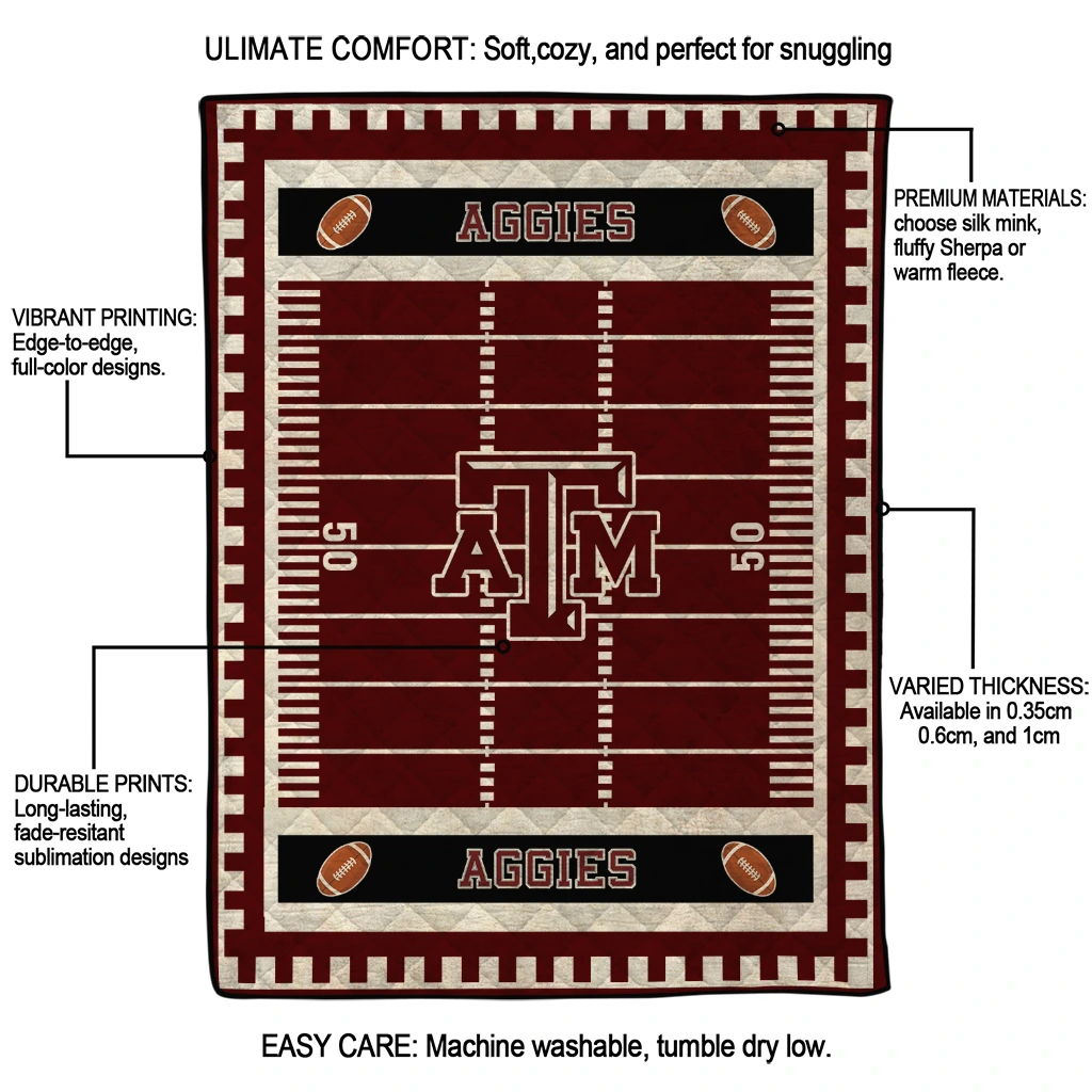 Wrap yourself in warmth and pride with the Texas A&M Aggies Mickey Player Maroon Quilt Blanket from the Texas A&M Aggies Blankets collection at Yes That Blanket. Made from 100% premium quilting-weight polyester blended with a touch of microfiber, this quilt offers a smooth, soft finish you’ll love. Choose between two quilting styles—Stipple or Diagonal—and enjoy the comfort of a cotton-filled layer inside that adds extra coziness for every season. The border is available in classic black or white, giving your design a clean, timeless edge.