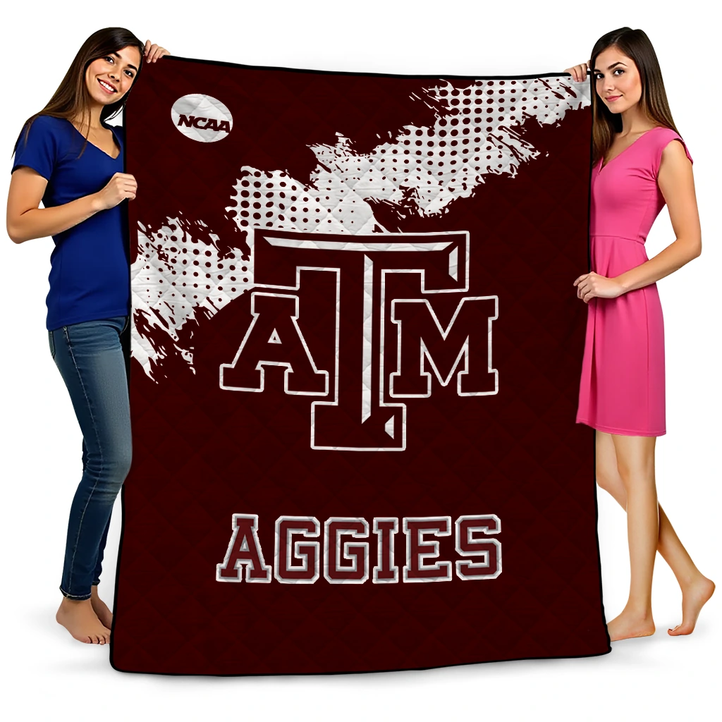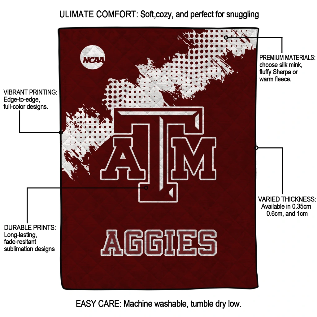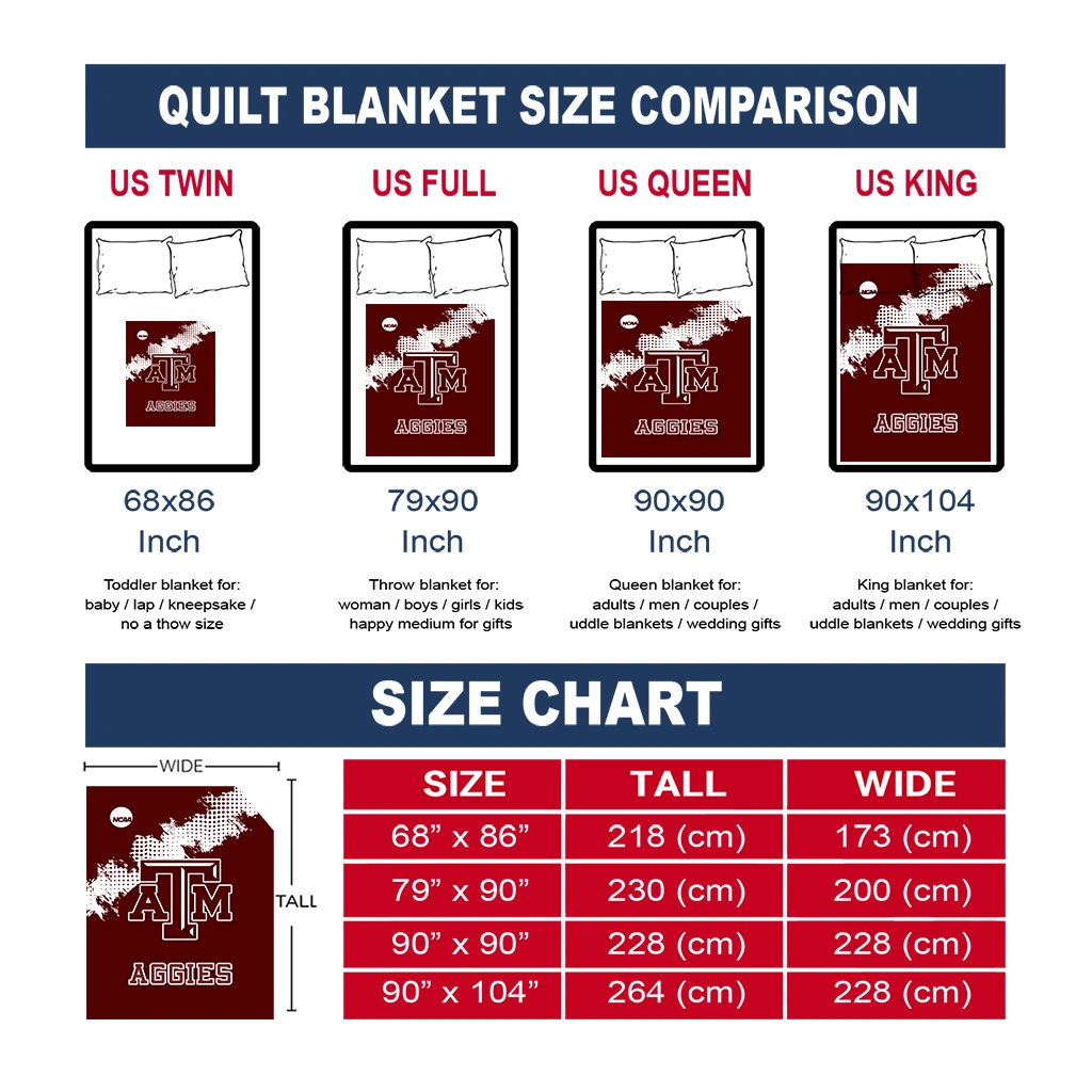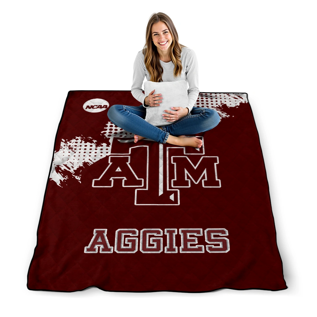Wrap yourself in warmth and pride with the Texas A&M Aggies Paint Trail Maroon Quilt Blanket from the Texas A&M Aggies Blankets collection at Yes That Blanket. Made from 100% premium quilting-weight polyester blended with a touch of microfiber, this quilt offers a smooth, soft finish you’ll love. Choose between two quilting styles—Stipple or Diagonal—and enjoy the comfort of a cotton-filled layer inside that adds extra coziness for every season. The border is available in classic black or white, giving your design a clean, timeless edge.