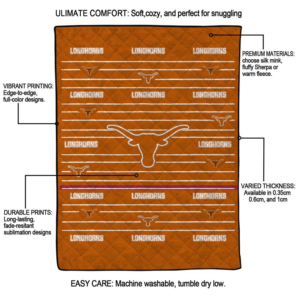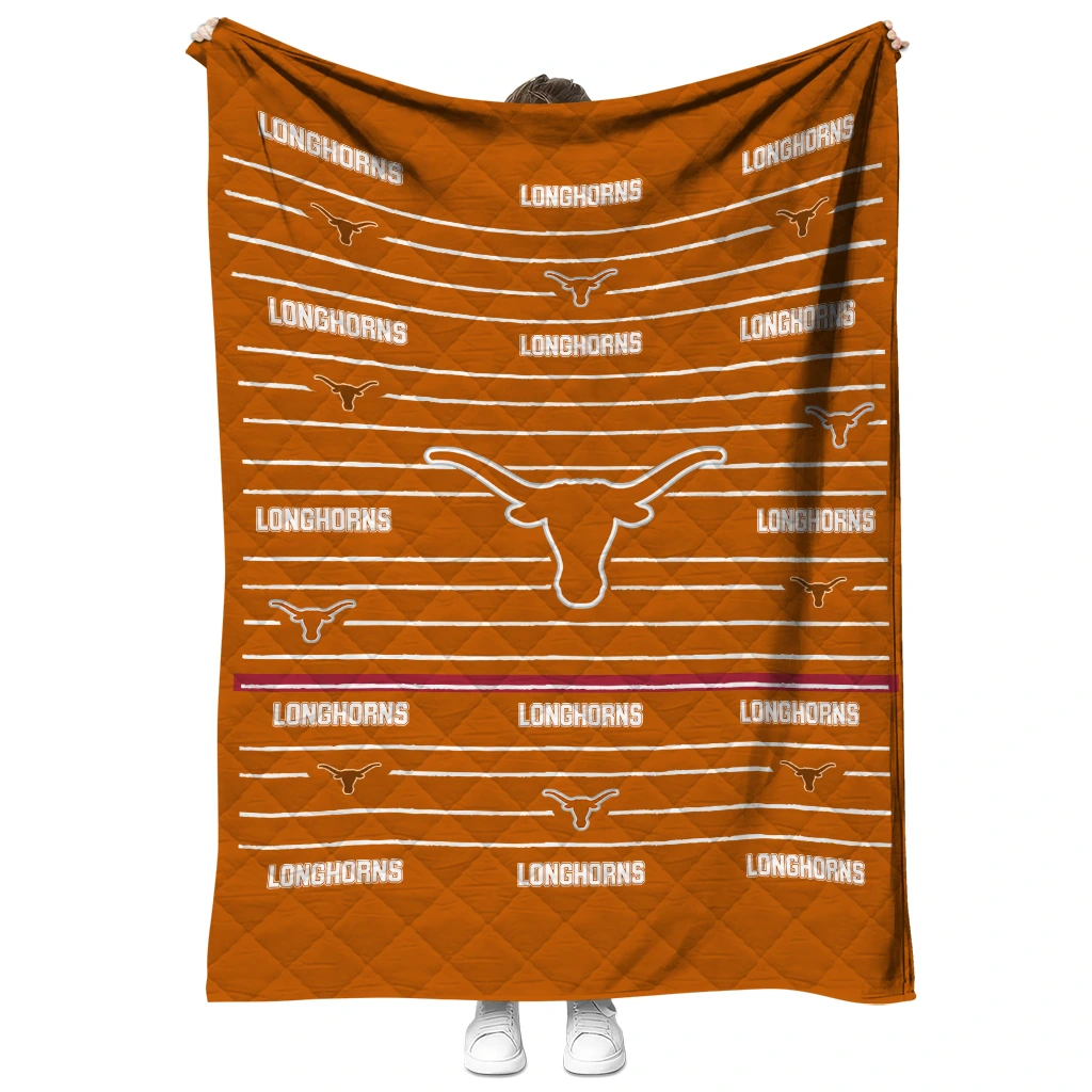 Wrap yourself in warmth and pride with the Texas Longhorns Handdrawn Stripes Orange Quilt Blanket from the Texas Longhorns Blankets collection at Yes That Blanket. Made from 100% premium quilting-weight polyester blended with a touch of microfiber, this quilt offers a smooth, soft finish you’ll love. Choose between two quilting styles—Stipple or Diagonal—and enjoy the comfort of a cotton-filled layer inside that adds extra coziness for every season. The border is available in classic black or white, giving your design a clean, timeless edge.