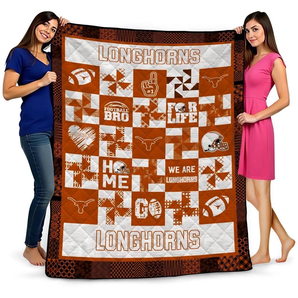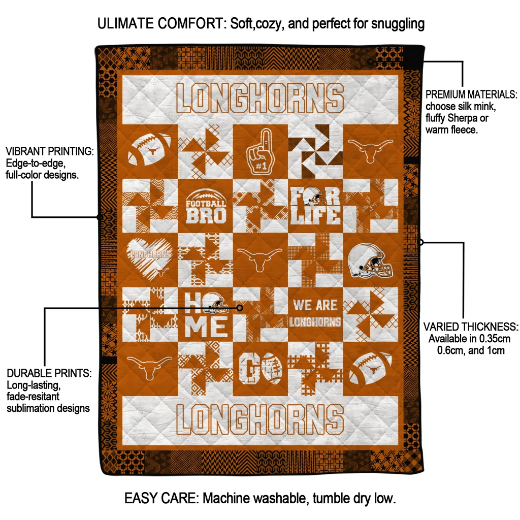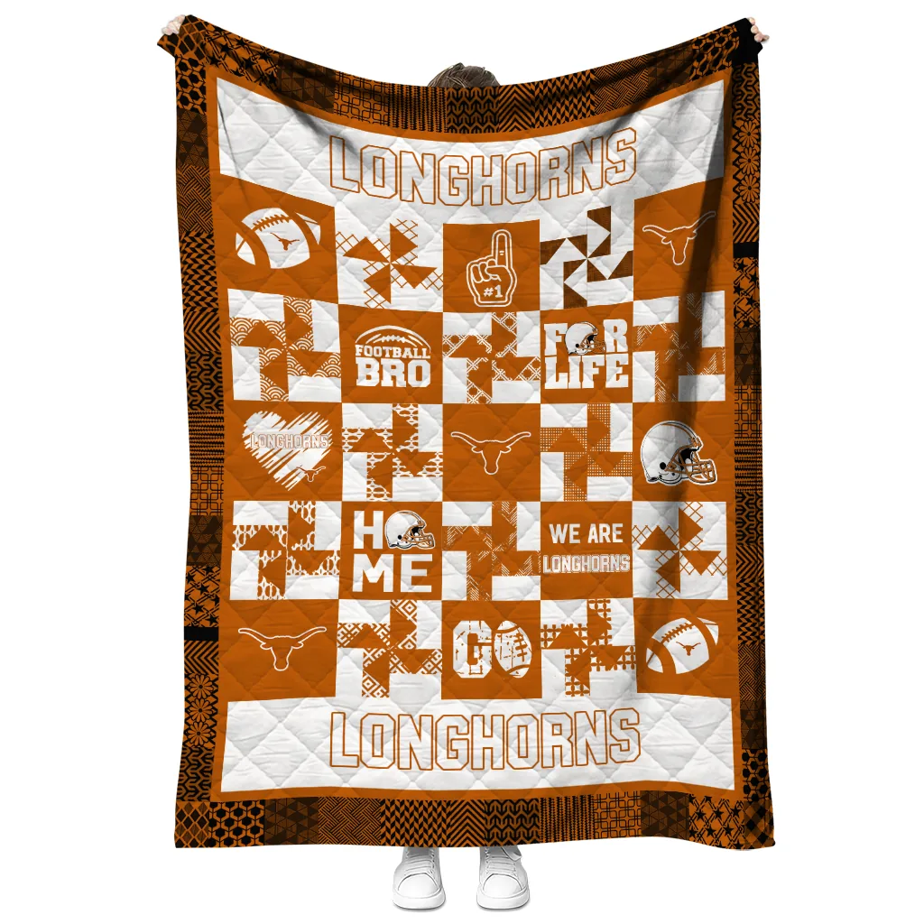 Texas Longhorns Helmet Heart Orange Quilt Blanket