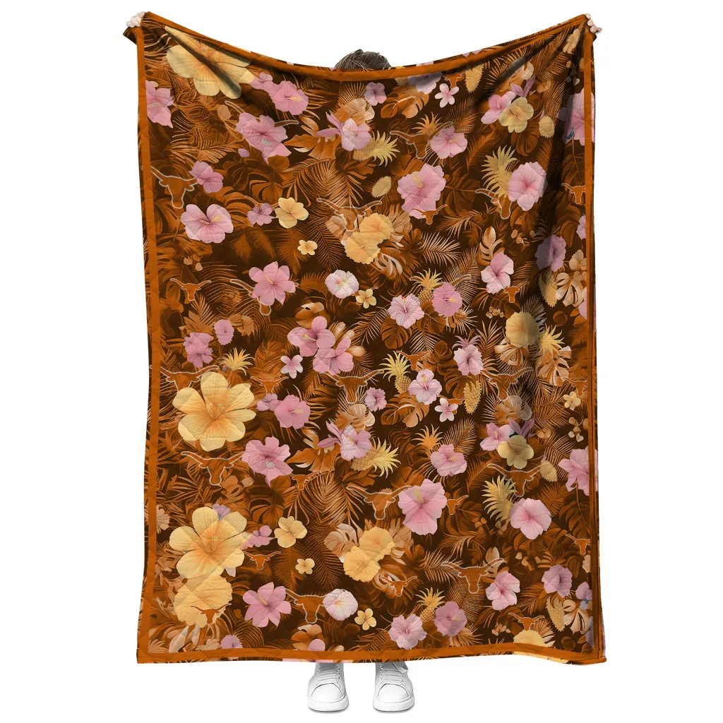 Texas Longhorns Hibiscus Foliage Orange Quilt Blanket