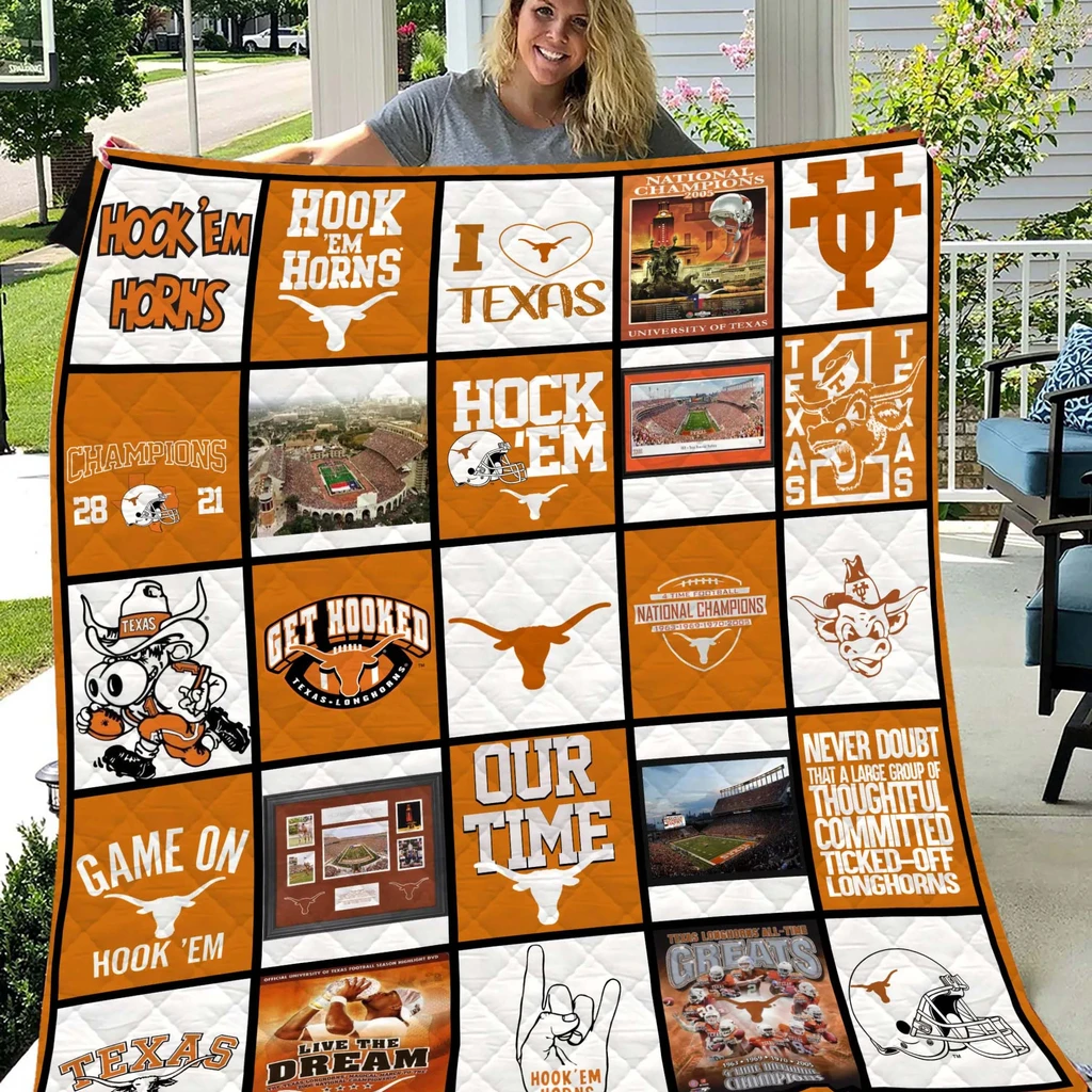 Texas Longhorns Quilt Blanket – Patchwork Logo Pattern Orange White