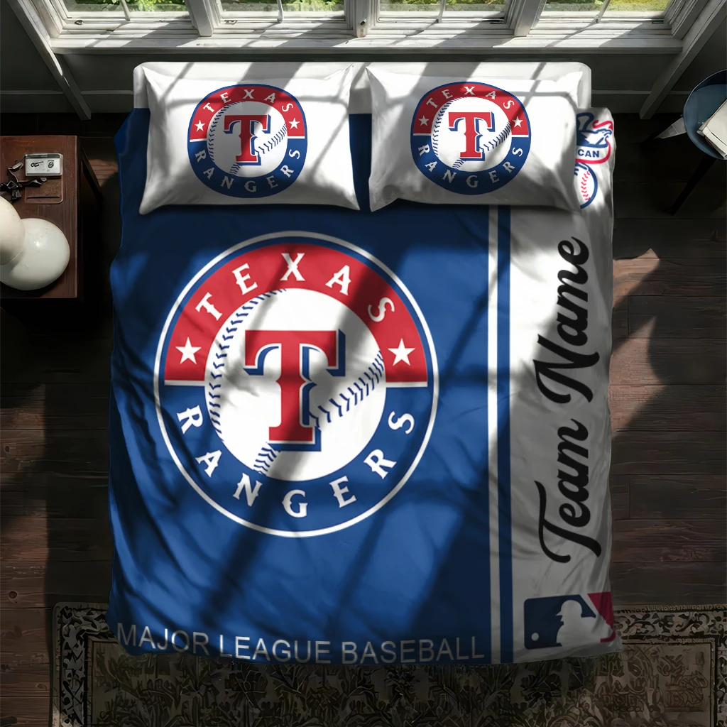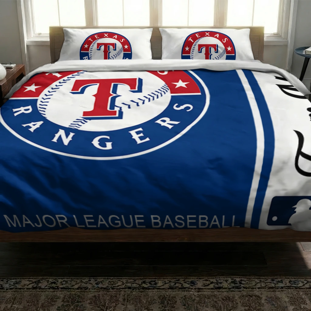 Texas Rangers Bedding Set – Custom MLB Logo Blue White