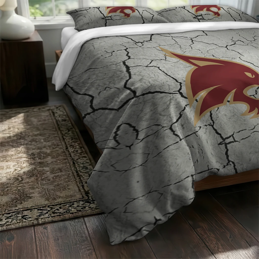 The Texas State Bobcats Bedding Set – Cracked Texture Gray Brown makes your room feel complete, warm, and overflowing with team pride. Designed for true fans, this bedding set from the Texas State Bobcats Bedding Sets collection at Yes That Blanket turns your sanctuary into a cozy retreat where sport style meets ultimate relaxation. Experience the perfect blend of comfort and passion every night with a finish so soft, you’ll never want to leave.
