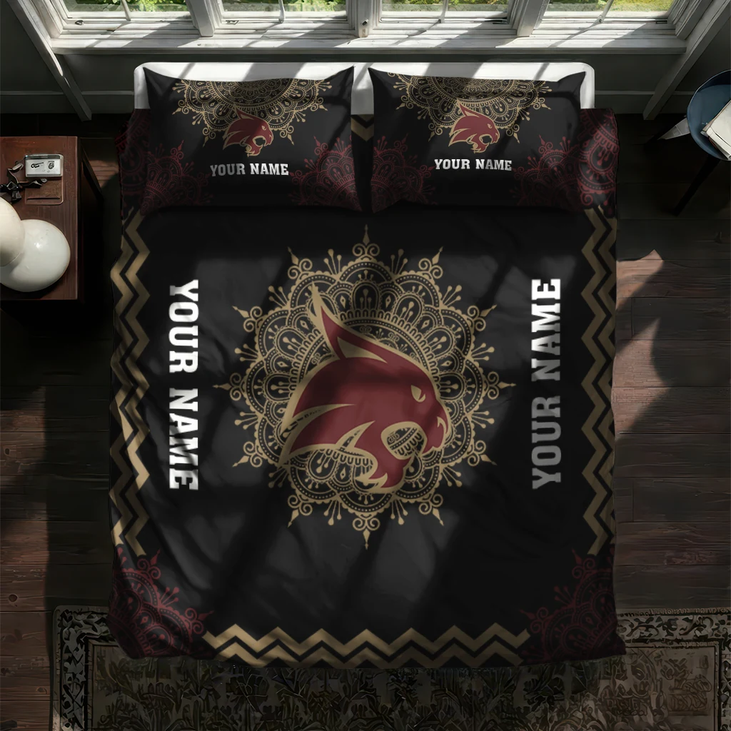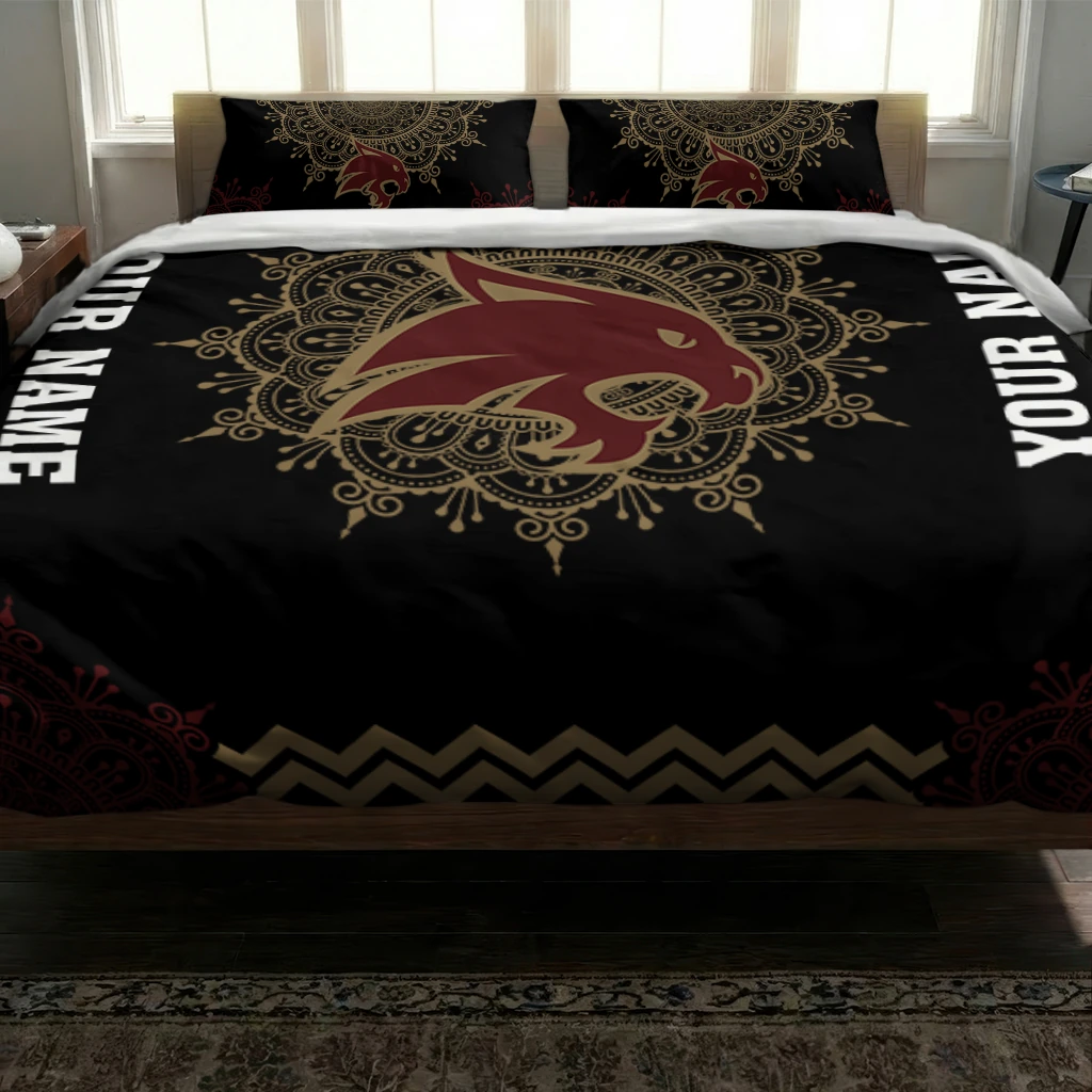 Texas State Bobcats Bedding Set – Customized Mandala Lacework Black Brown
