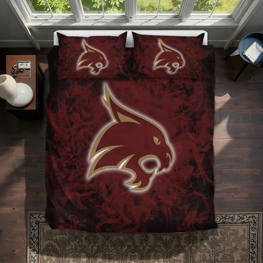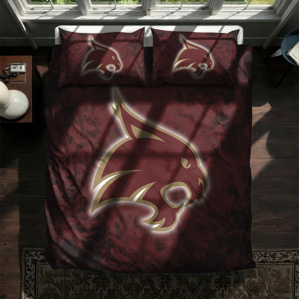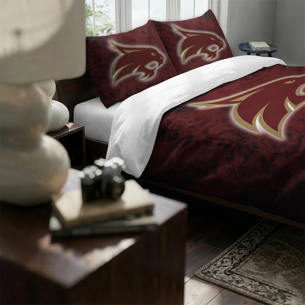 The Texas State Bobcats Bedding Set – Red Mist Maroon Black makes your room feel complete, warm, and overflowing with team pride. Designed for true fans, this bedding set from the Texas State Bobcats Bedding Sets collection at Yes That Blanket turns your sanctuary into a cozy retreat where sport style meets ultimate relaxation. Experience the perfect blend of comfort and passion every night with a finish so soft, you’ll never want to leave.
