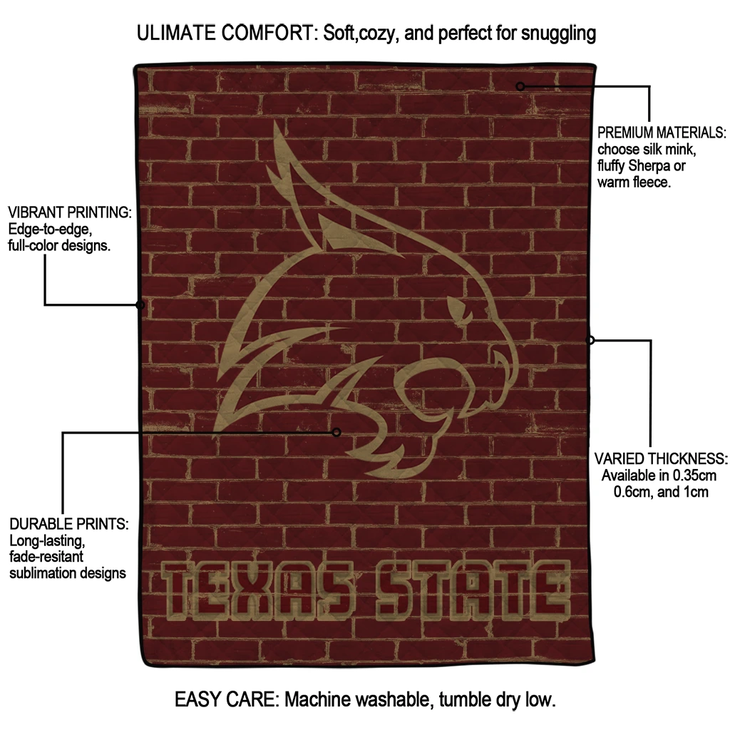 Wrap yourself in warmth and pride with the Texas State Bobcats Brick Grid Maroon Quilt Blanket from the Texas State Bobcats Blankets collection at Yes That Blanket. Made from 100% premium quilting-weight polyester blended with a touch of microfiber, this quilt offers a smooth, soft finish you’ll love. Choose between two quilting styles—Stipple or Diagonal—and enjoy the comfort of a cotton-filled layer inside that adds extra coziness for every season. The border is available in classic black or white, giving your design a clean, timeless edge.