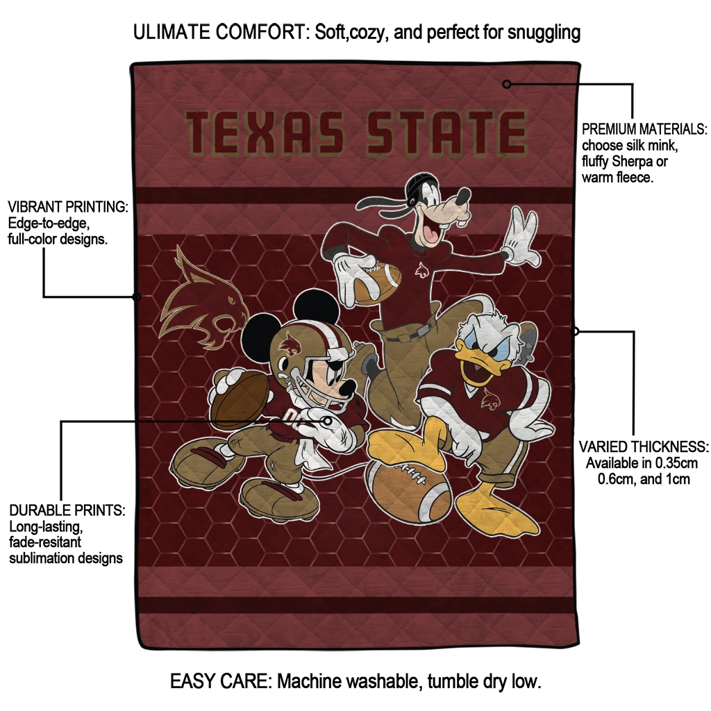 Texas State Bobcats Disney Football Maroon Quilt Blanket