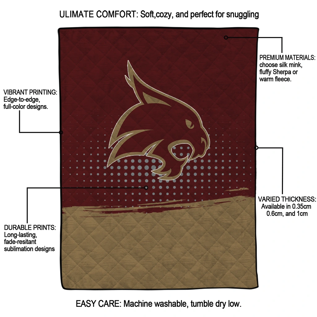 Texas State Bobcats Dot Illusion Maroon Quilt Blanket