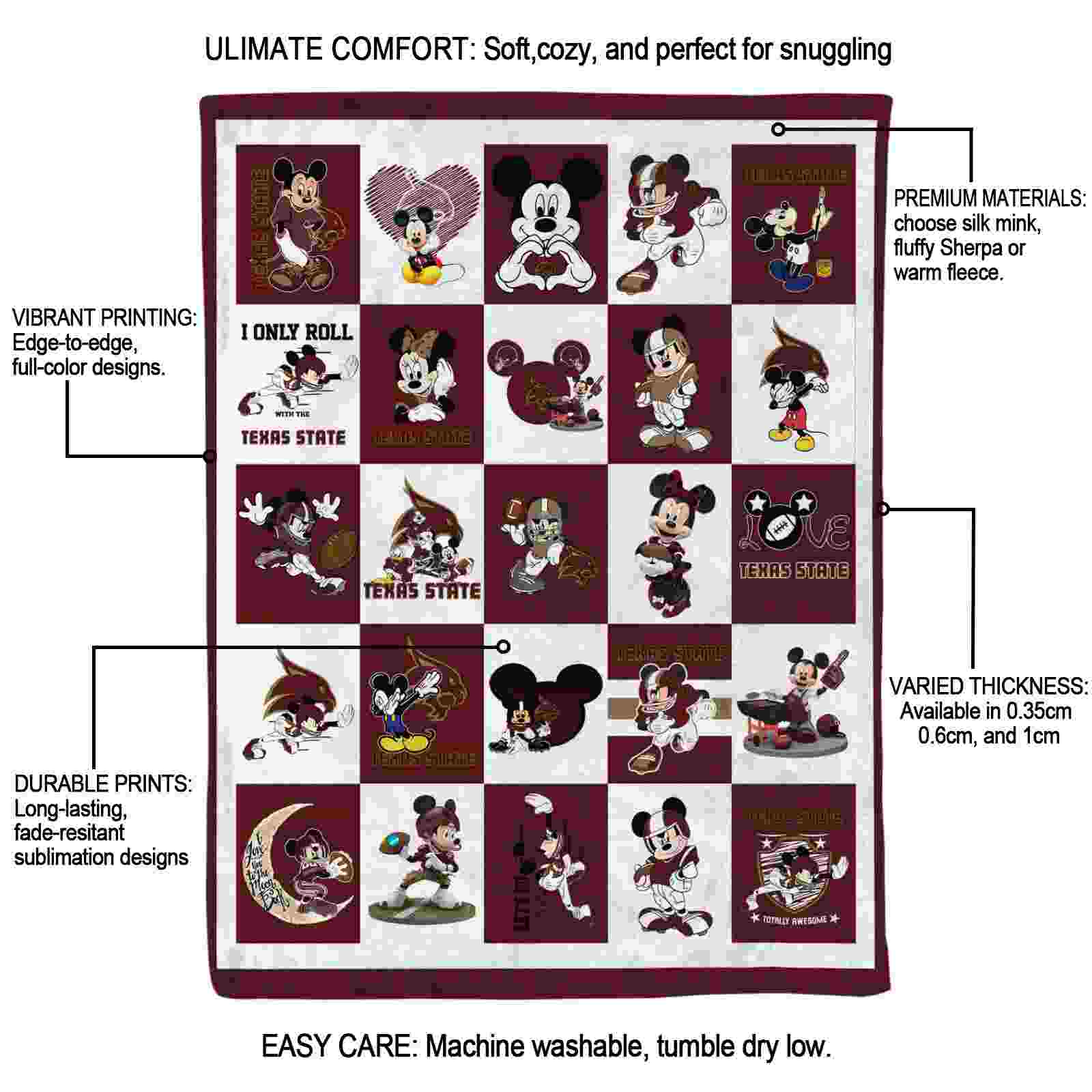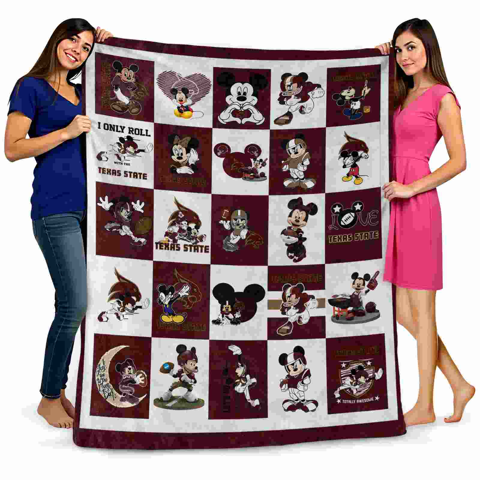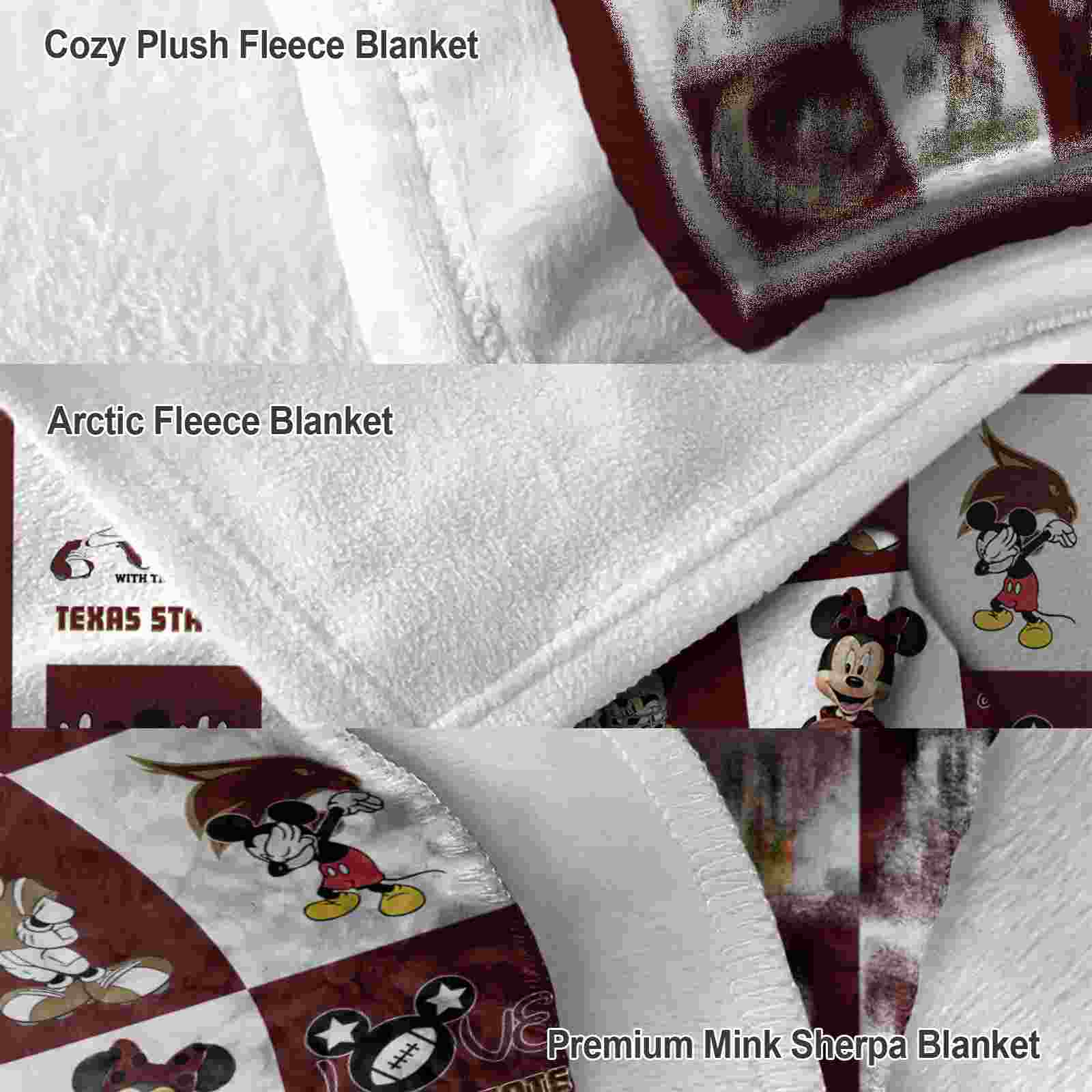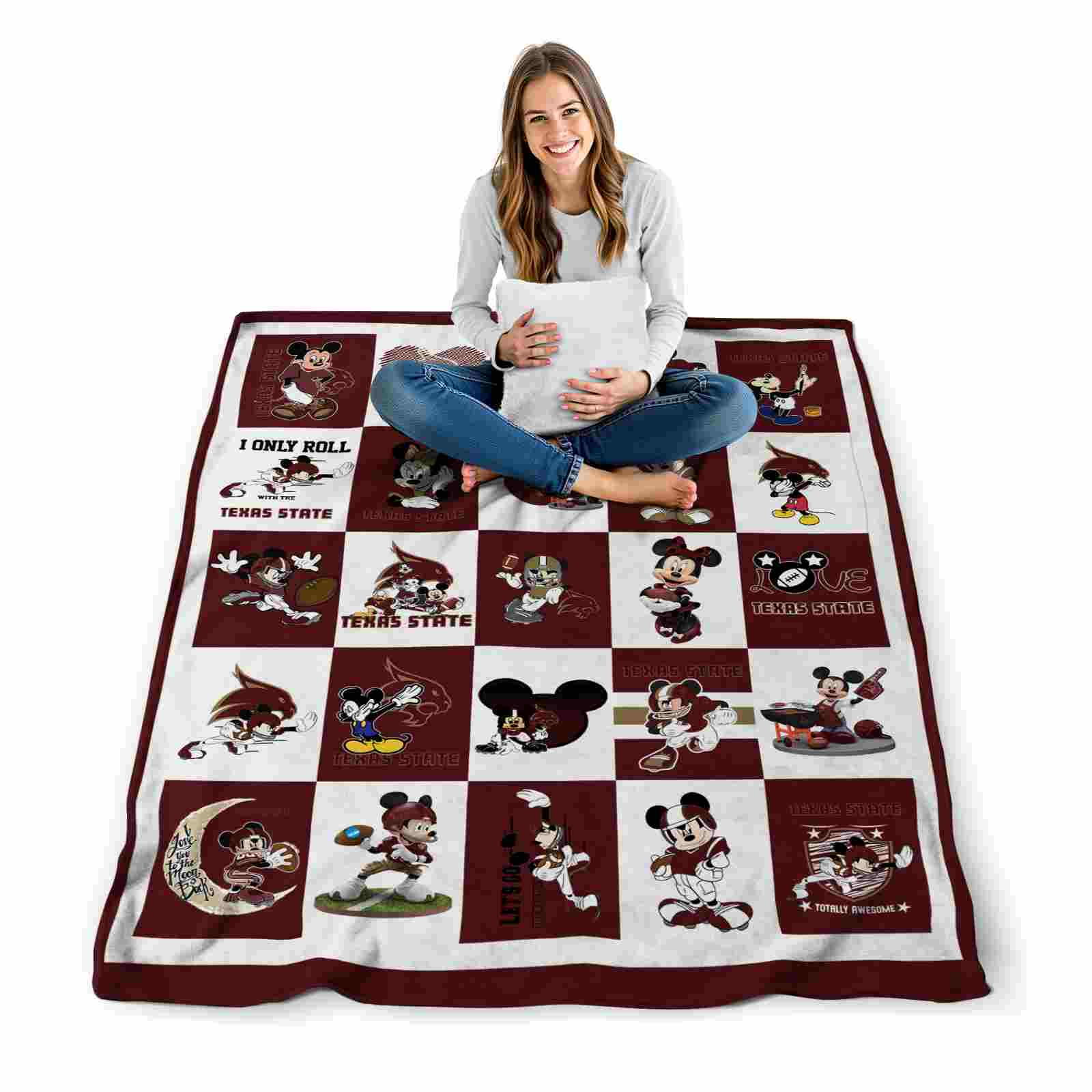Without a doubt, the Texas State Bobcats Mickey Minnie Maroon White Blanket from Texas State Bobcats Blankets collection is offering true fans a chance to showcase passion in a cool way. Personalize it with your favorite team's logo or a meaningful name to make it uniquely yours. Isn't that great? The full-color print ensures vibrant, edge-to-edge designs, bringing your sports enthusiasm to life!