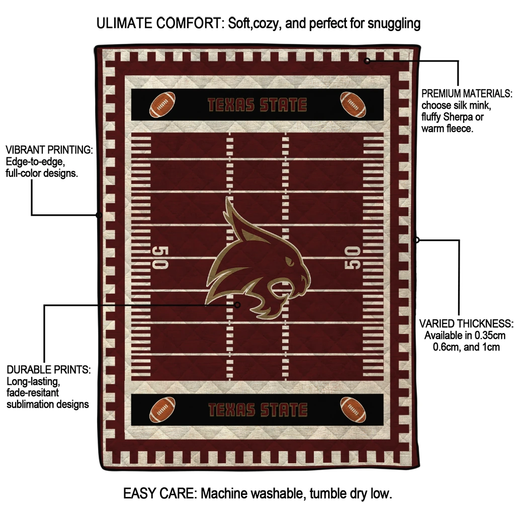 Texas State Bobcats Mickey Player Maroon Quilt Blanket