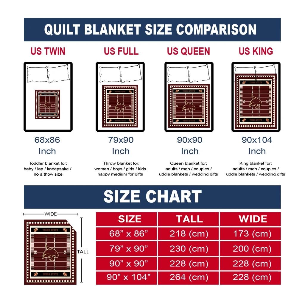 Wrap yourself in warmth and pride with the Texas State Bobcats Mickey Player Maroon Quilt Blanket from the Texas State Bobcats Blankets collection at Yes That Blanket. Made from 100% premium quilting-weight polyester blended with a touch of microfiber, this quilt offers a smooth, soft finish you’ll love. Choose between two quilting styles—Stipple or Diagonal—and enjoy the comfort of a cotton-filled layer inside that adds extra coziness for every season. The border is available in classic black or white, giving your design a clean, timeless edge.