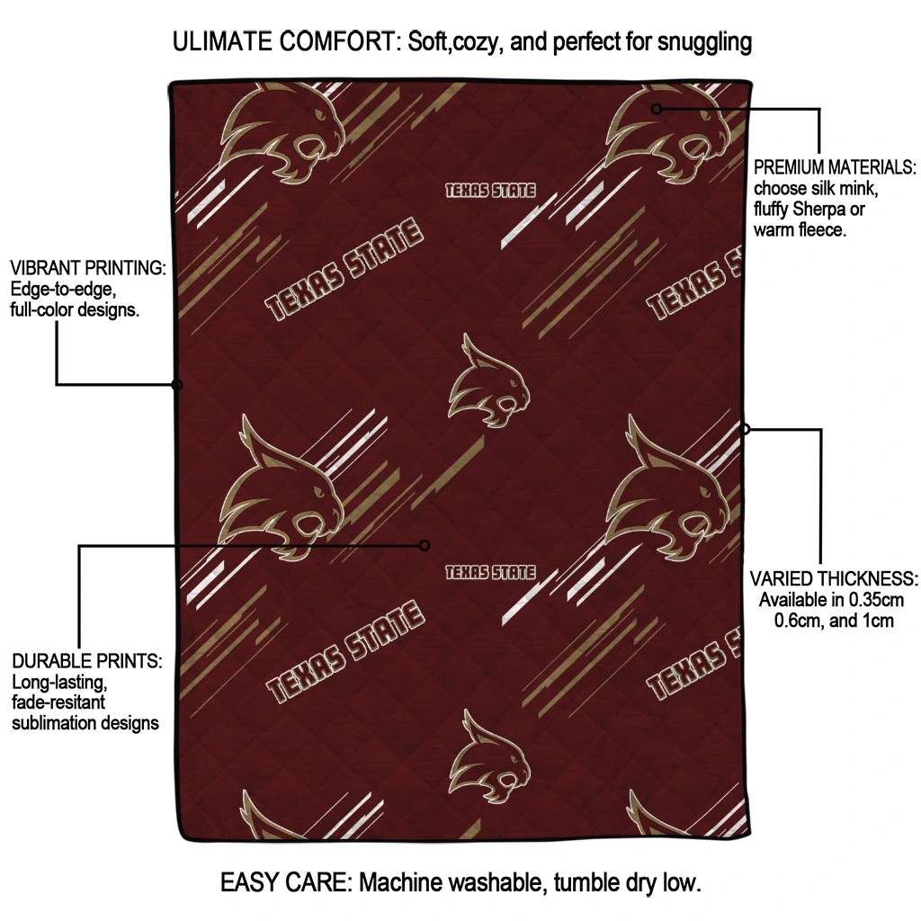 Texas State Bobcats Sketch Lines Maroon Quilt Blanket