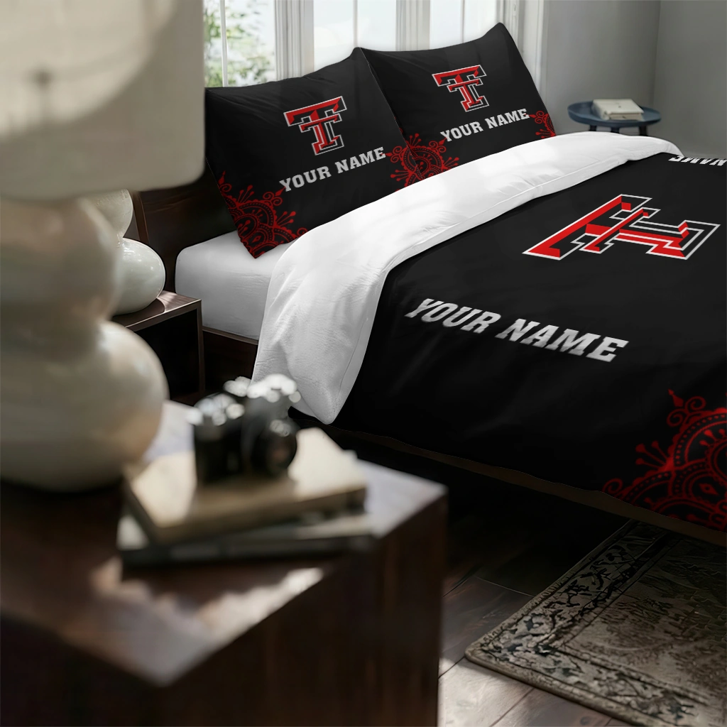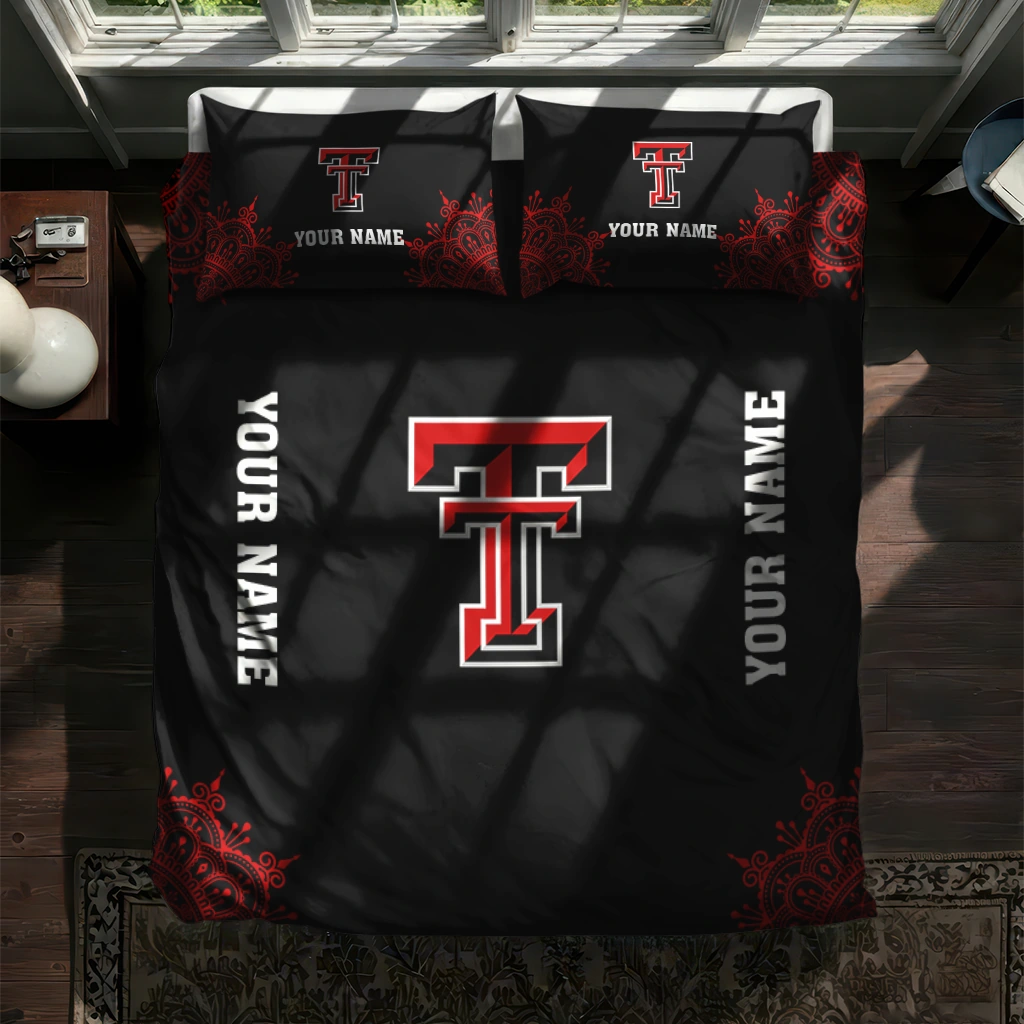 Texas Tech Red Raiders Bedding Set – Personalized Mandala Lacework Black Red