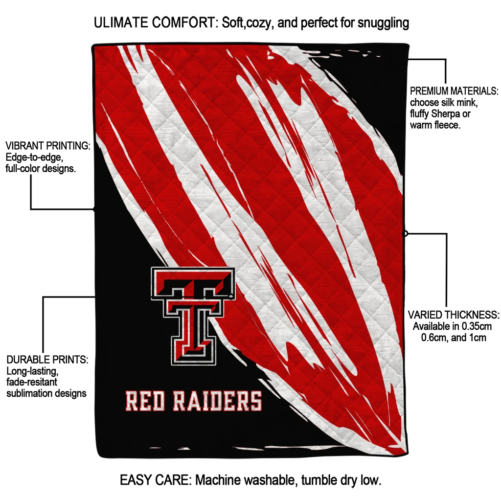 Wrap yourself in warmth and pride with the Texas Tech Red Raiders Stroke Art Red White Quilt Blanket from the Texas Tech Red Raiders Blankets collection at Yes That Blanket. Made from 100% premium quilting-weight polyester blended with a touch of microfiber, this quilt offers a smooth, soft finish you’ll love. Choose between two quilting styles—Stipple or Diagonal—and enjoy the comfort of a cotton-filled layer inside that adds extra coziness for every season. The border is available in classic black or white, giving your design a clean, timeless edge.