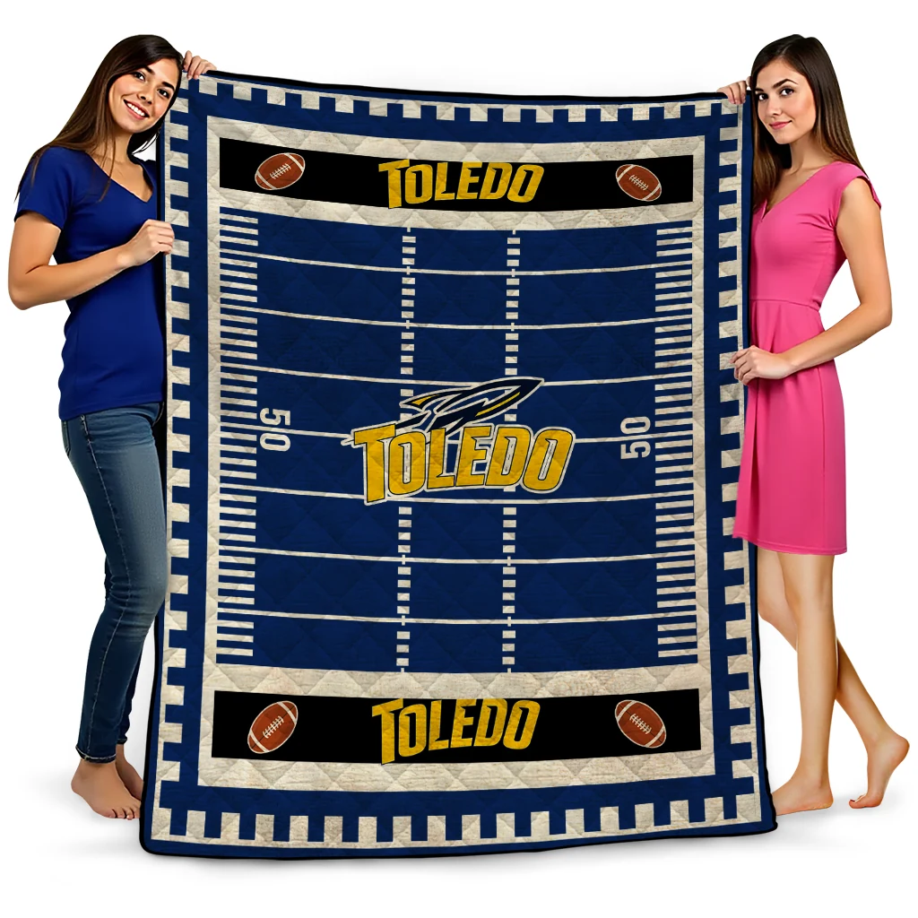 The Toledo Rockets Mickey Player Blue Quilt Blanket is more than a blanket—it’s everyday comfort, thoughtfully made. Crafted from premium quilting fabric with a soft microfiber touch, it offers a smooth hand-feel and lasting coziness. Layered quilting with a cotton-filled core provides adaptable warmth across seasons while maintaining a clean, tailored look on your bed or sofa.