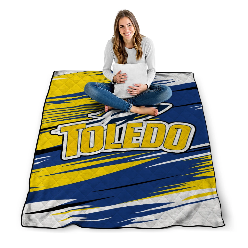 Wrap yourself in warmth and pride with the Toledo Rockets Wild Lines Blue White Quilt Blanket from the Toledo Rockets Blankets collection at Yes That Blanket. Made from 100% premium quilting-weight polyester blended with a touch of microfiber, this quilt offers a smooth, soft finish you’ll love. Choose between two quilting styles—Stipple or Diagonal—and enjoy the comfort of a cotton-filled layer inside that adds extra coziness for every season. The border is available in classic black or white, giving your design a clean, timeless edge.