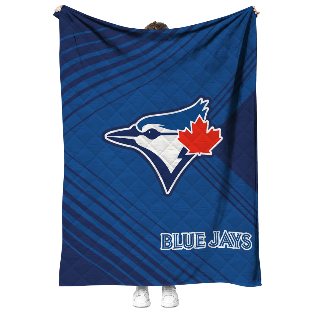 Wrap yourself in warmth and pride with the Toronto Blue Jays Arrow Layers Blue Quilt Blanket from the Toronto Blue Jays Blankets collection at Yes That Blanket. Made from 100% premium quilting-weight polyester blended with a touch of microfiber, this quilt offers a smooth, soft finish you’ll love. Choose between two quilting styles—Stipple or Diagonal—and enjoy the comfort of a cotton-filled layer inside that adds extra coziness for every season. The border is available in classic black or white, giving your design a clean, timeless edge.
