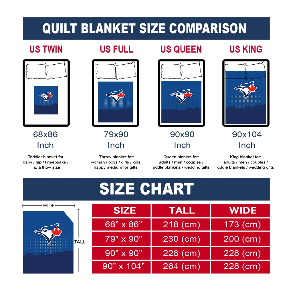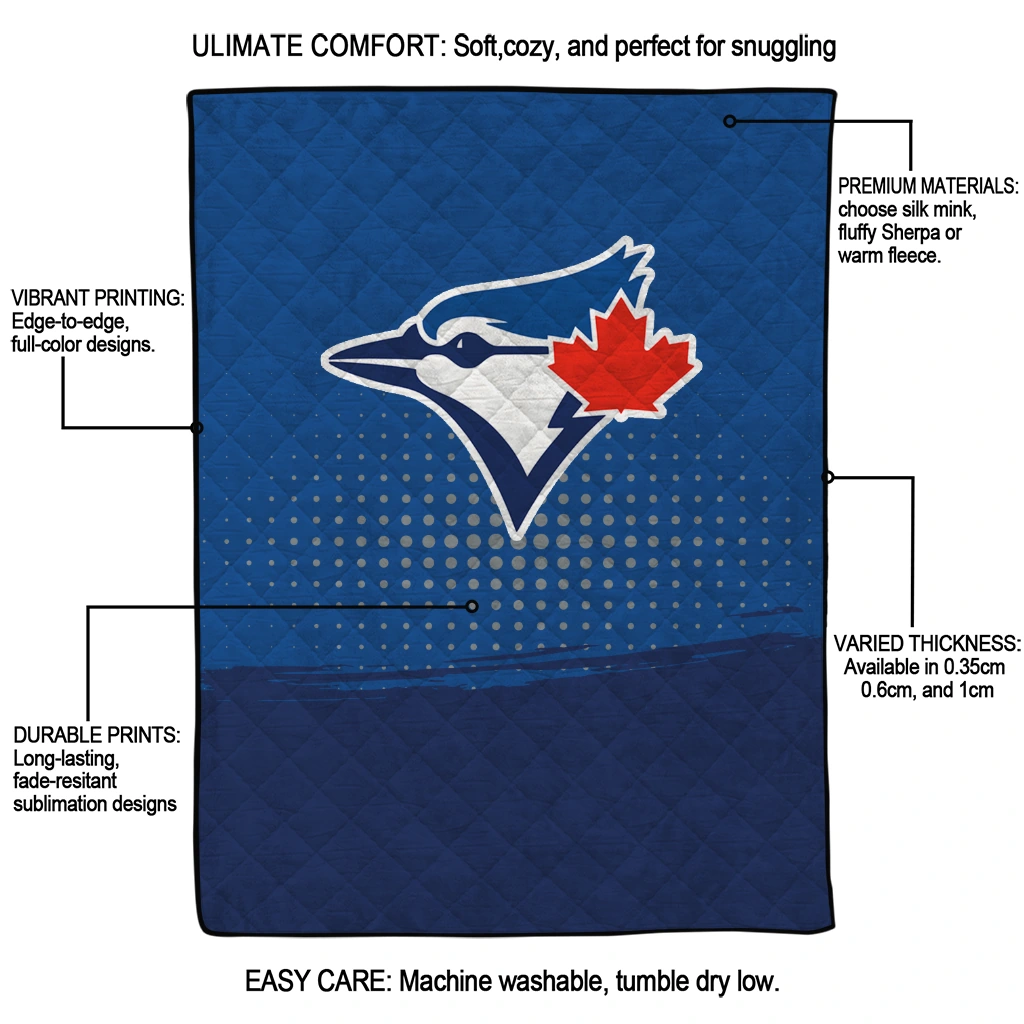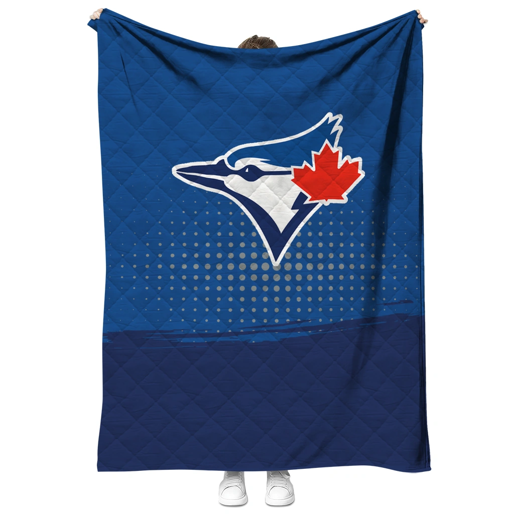 Wrap yourself in warmth and pride with the Toronto Blue Jays Dot Illusion Blue Quilt Blanket from the Toronto Blue Jays Blankets collection at Yes That Blanket. Made from 100% premium quilting-weight polyester blended with a touch of microfiber, this quilt offers a smooth, soft finish you’ll love. Choose between two quilting styles—Stipple or Diagonal—and enjoy the comfort of a cotton-filled layer inside that adds extra coziness for every season. The border is available in classic black or white, giving your design a clean, timeless edge.