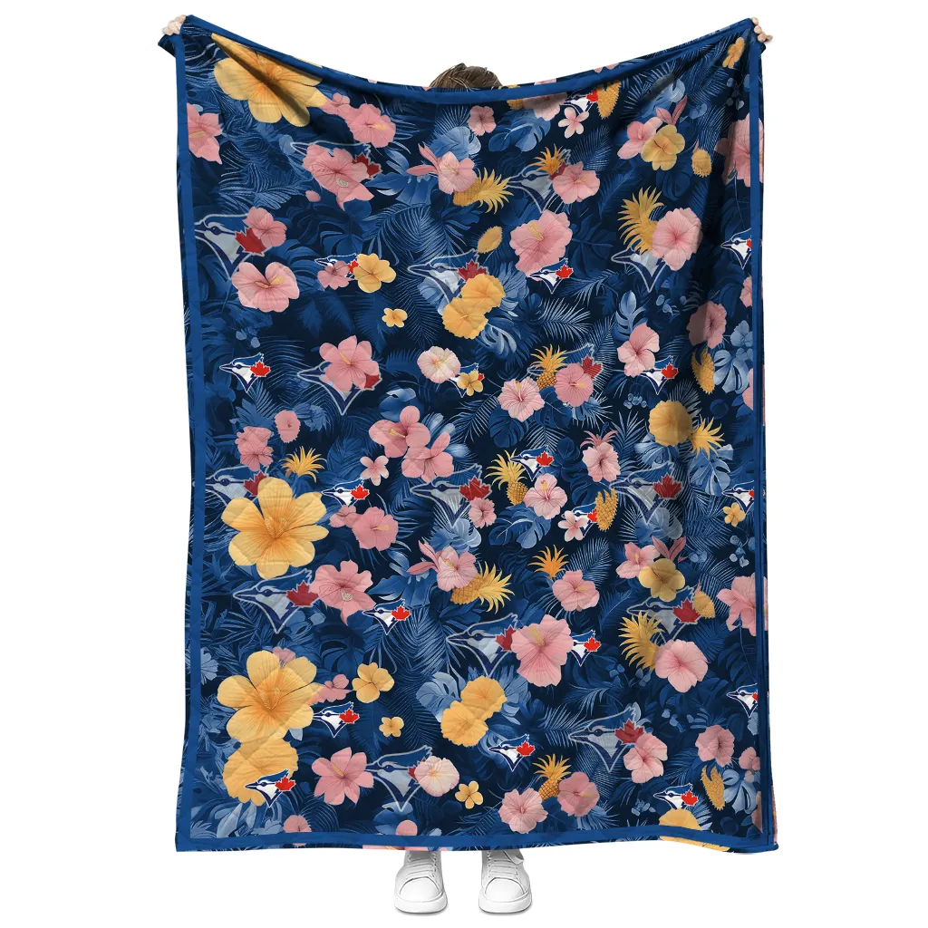 Wrap yourself in warmth and pride with the Toronto Blue Jays Hibiscus Foliage Blue Quilt Blanket from the Toronto Blue Jays Blankets collection at Yes That Blanket. Made from 100% premium quilting-weight polyester blended with a touch of microfiber, this quilt offers a smooth, soft finish you’ll love. Choose between two quilting styles—Stipple or Diagonal—and enjoy the comfort of a cotton-filled layer inside that adds extra coziness for every season. The border is available in classic black or white, giving your design a clean, timeless edge.