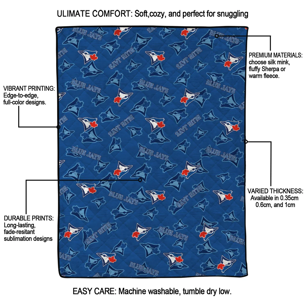 Wrap yourself in warmth and pride with the Toronto Blue Jays Solid Classic Blue Quilt Blanket from the Toronto Blue Jays Blankets collection at Yes That Blanket. Made from 100% premium quilting-weight polyester blended with a touch of microfiber, this quilt offers a smooth, soft finish you’ll love. Choose between two quilting styles—Stipple or Diagonal—and enjoy the comfort of a cotton-filled layer inside that adds extra coziness for every season. The border is available in classic black or white, giving your design a clean, timeless edge.