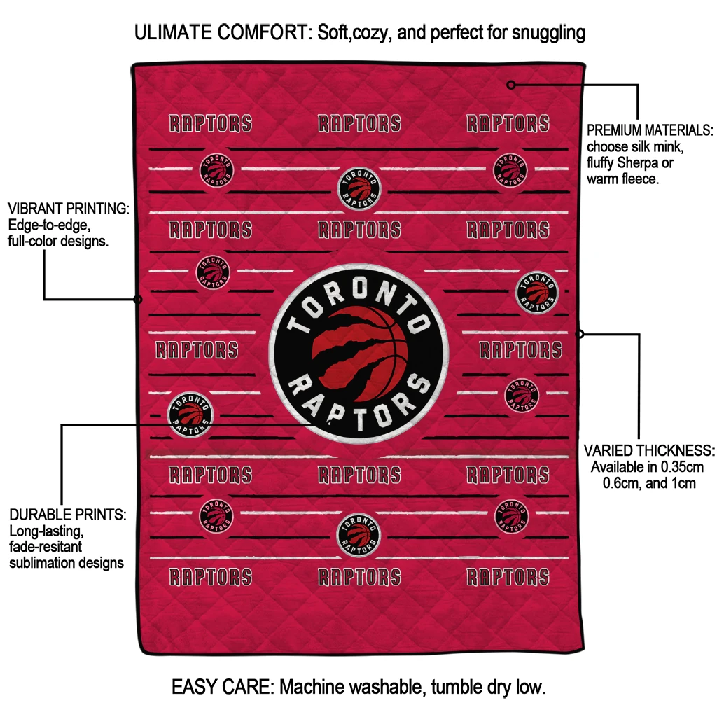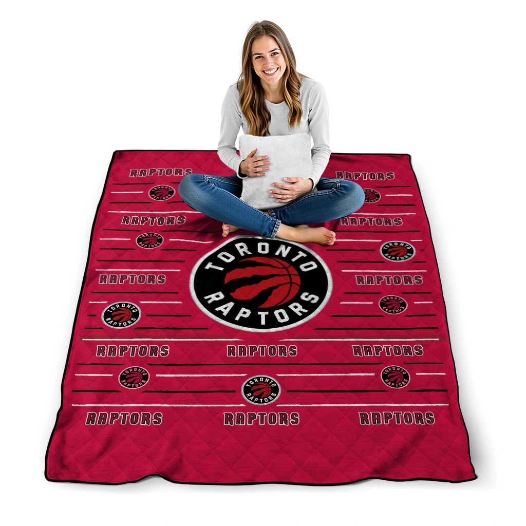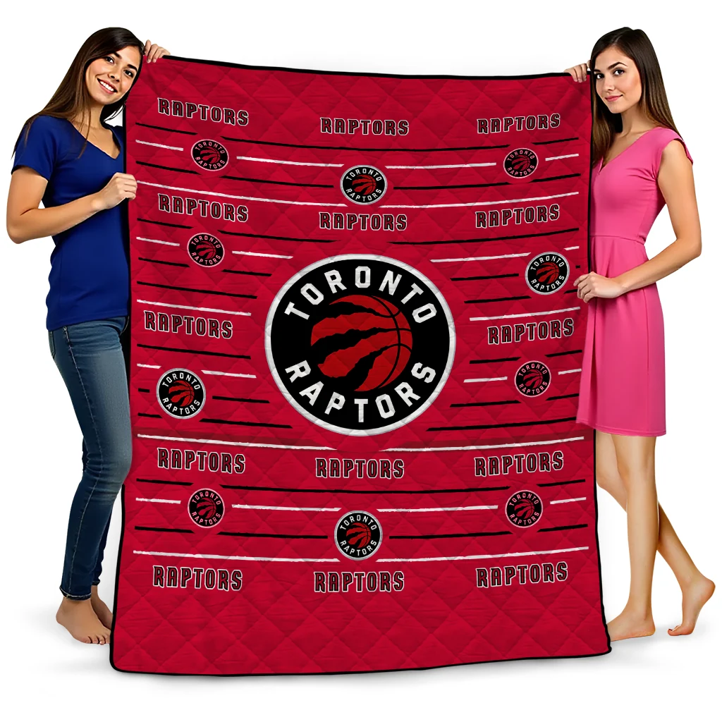 Toronto Raptors Handdrawn Stripes Red Quilt Blanket
