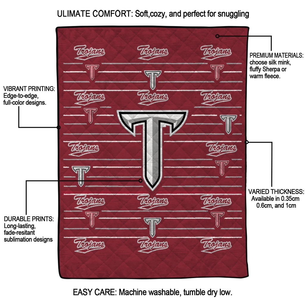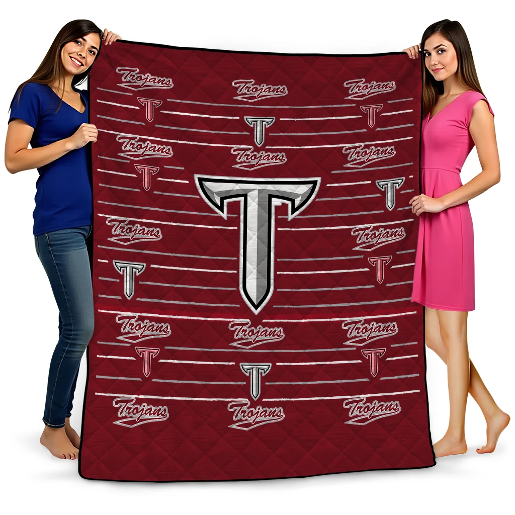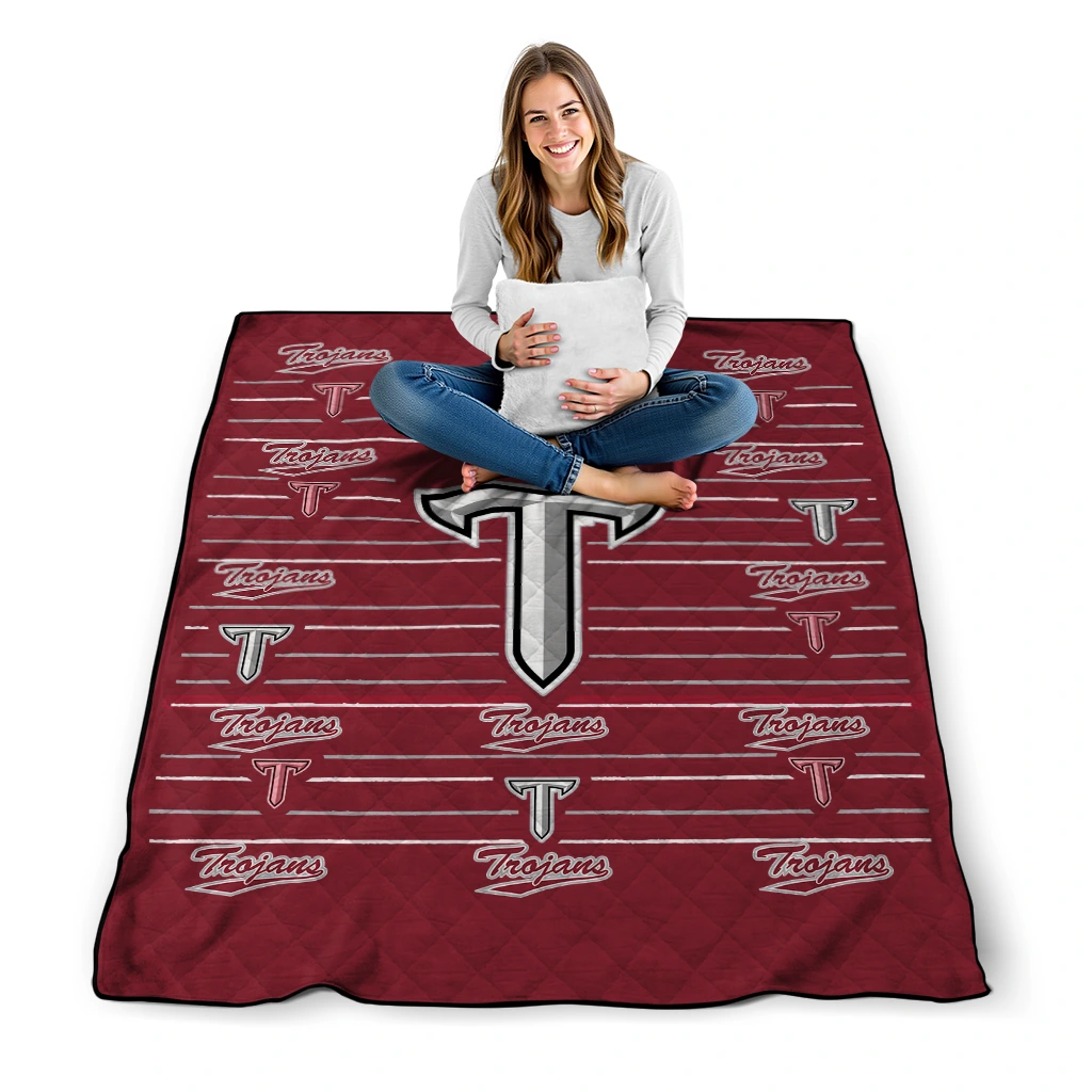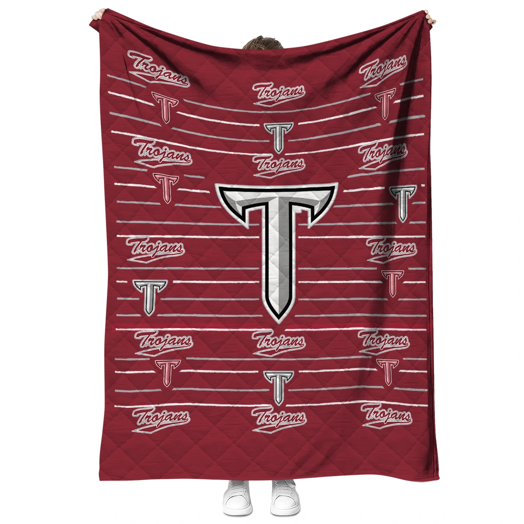 Wrap yourself in warmth and pride with the Troy Trojans Handdrawn Stripes Red Quilt Blanket from the Troy Trojans Blankets collection at Yes That Blanket. Made from 100% premium quilting-weight polyester blended with a touch of microfiber, this quilt offers a smooth, soft finish you’ll love. Choose between two quilting styles—Stipple or Diagonal—and enjoy the comfort of a cotton-filled layer inside that adds extra coziness for every season. The border is available in classic black or white, giving your design a clean, timeless edge.