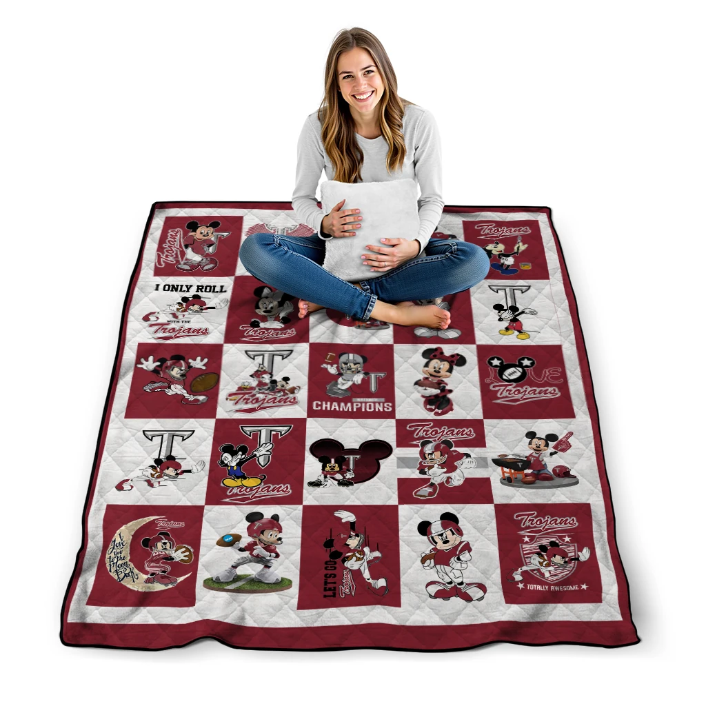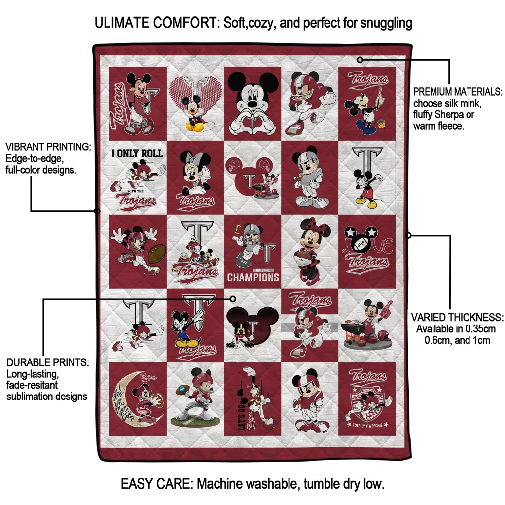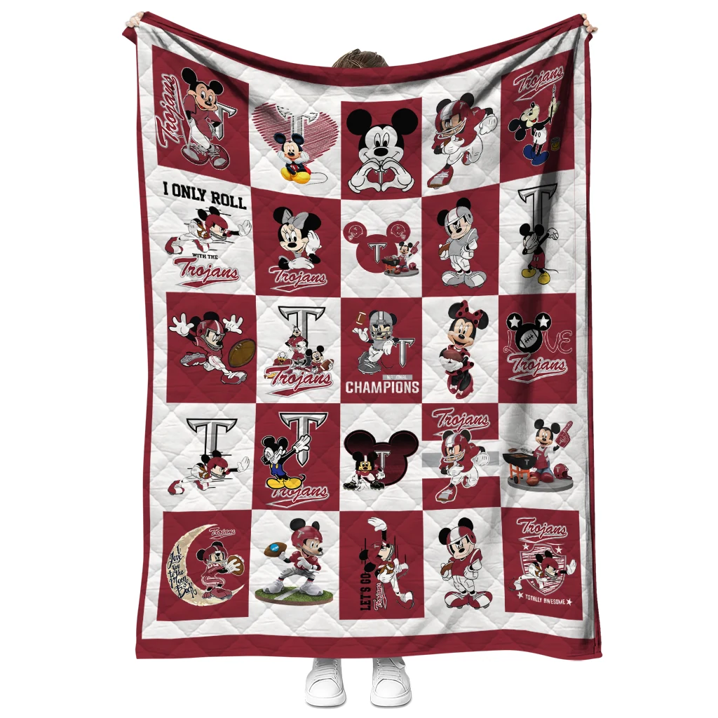 Wrap yourself in warmth and pride with the Troy Trojans Mickey Mouse Motif Red White Quilt Blanket from the Troy Trojans Blankets collection at Yes That Blanket. Made from 100% premium quilting-weight polyester blended with a touch of microfiber, this quilt offers a smooth, soft finish you’ll love. Choose between two quilting styles—Stipple or Diagonal—and enjoy the comfort of a cotton-filled layer inside that adds extra coziness for every season. The border is available in classic black or white, giving your design a clean, timeless edge.