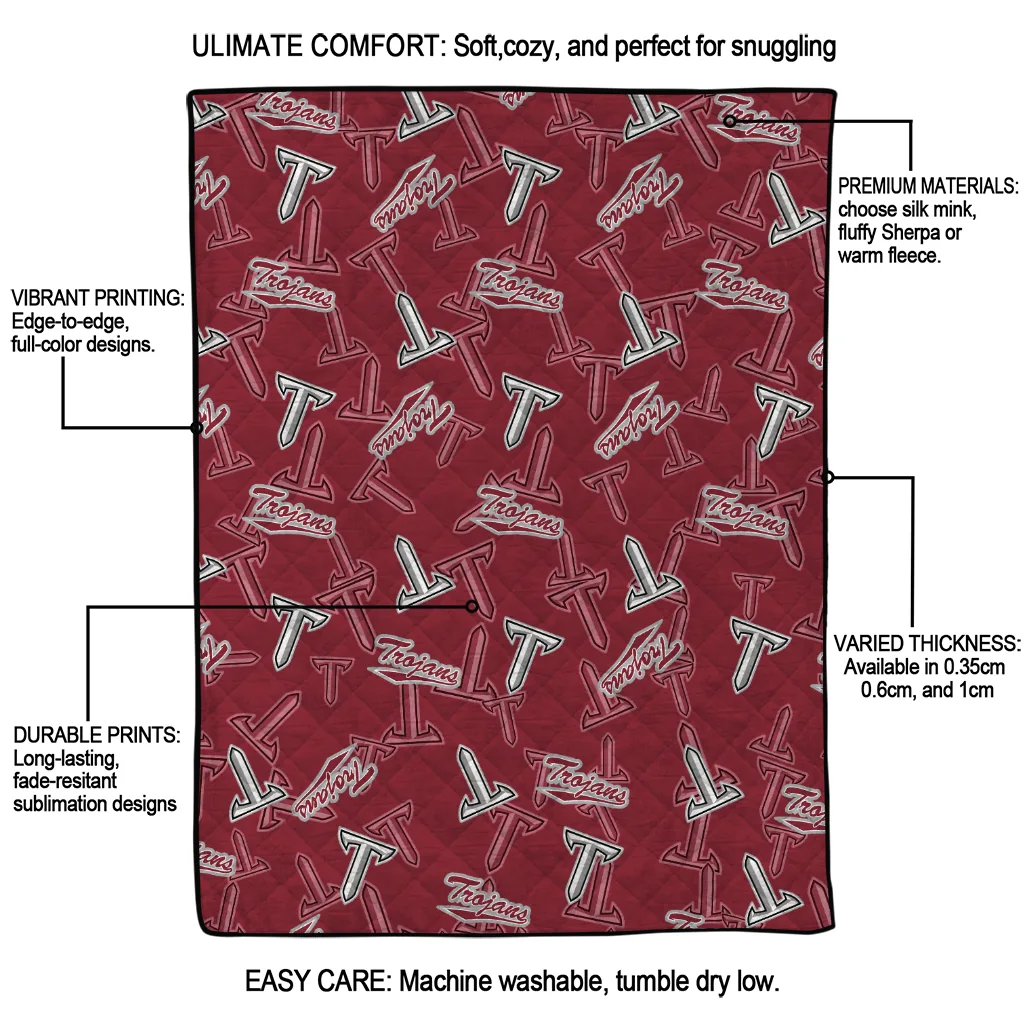 Wrap yourself in warmth and pride with the Troy Trojans Solid Classic Red Quilt Blanket from the Troy Trojans Blankets collection at Yes That Blanket. Made from 100% premium quilting-weight polyester blended with a touch of microfiber, this quilt offers a smooth, soft finish you’ll love. Choose between two quilting styles—Stipple or Diagonal—and enjoy the comfort of a cotton-filled layer inside that adds extra coziness for every season. The border is available in classic black or white, giving your design a clean, timeless edge.