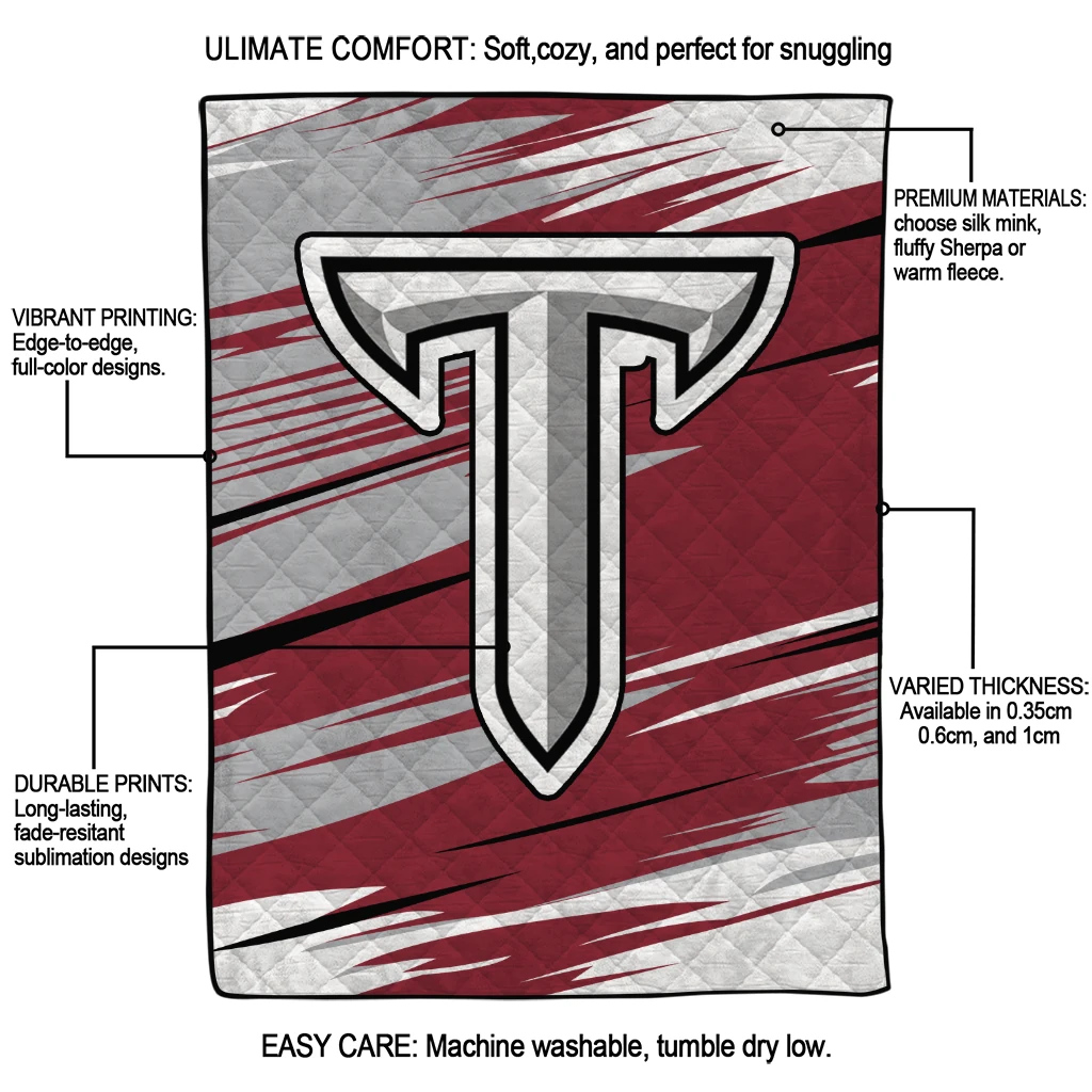 Troy Trojans Wild Lines Red White Quilt Blanket