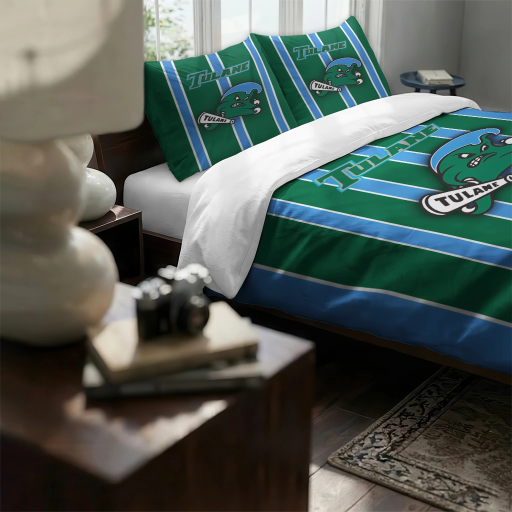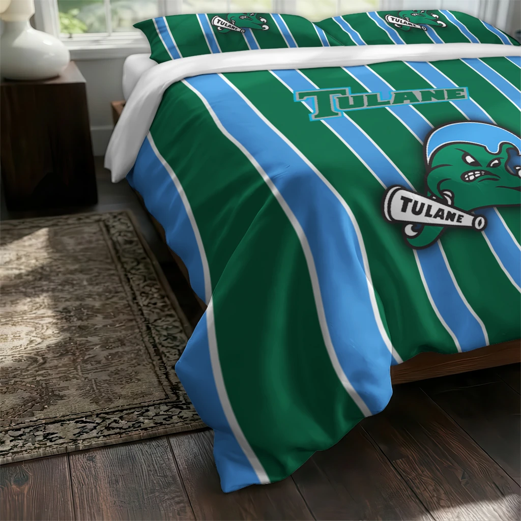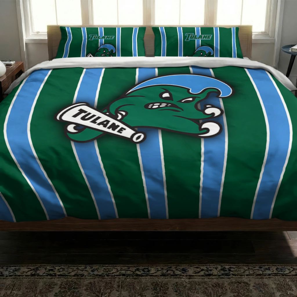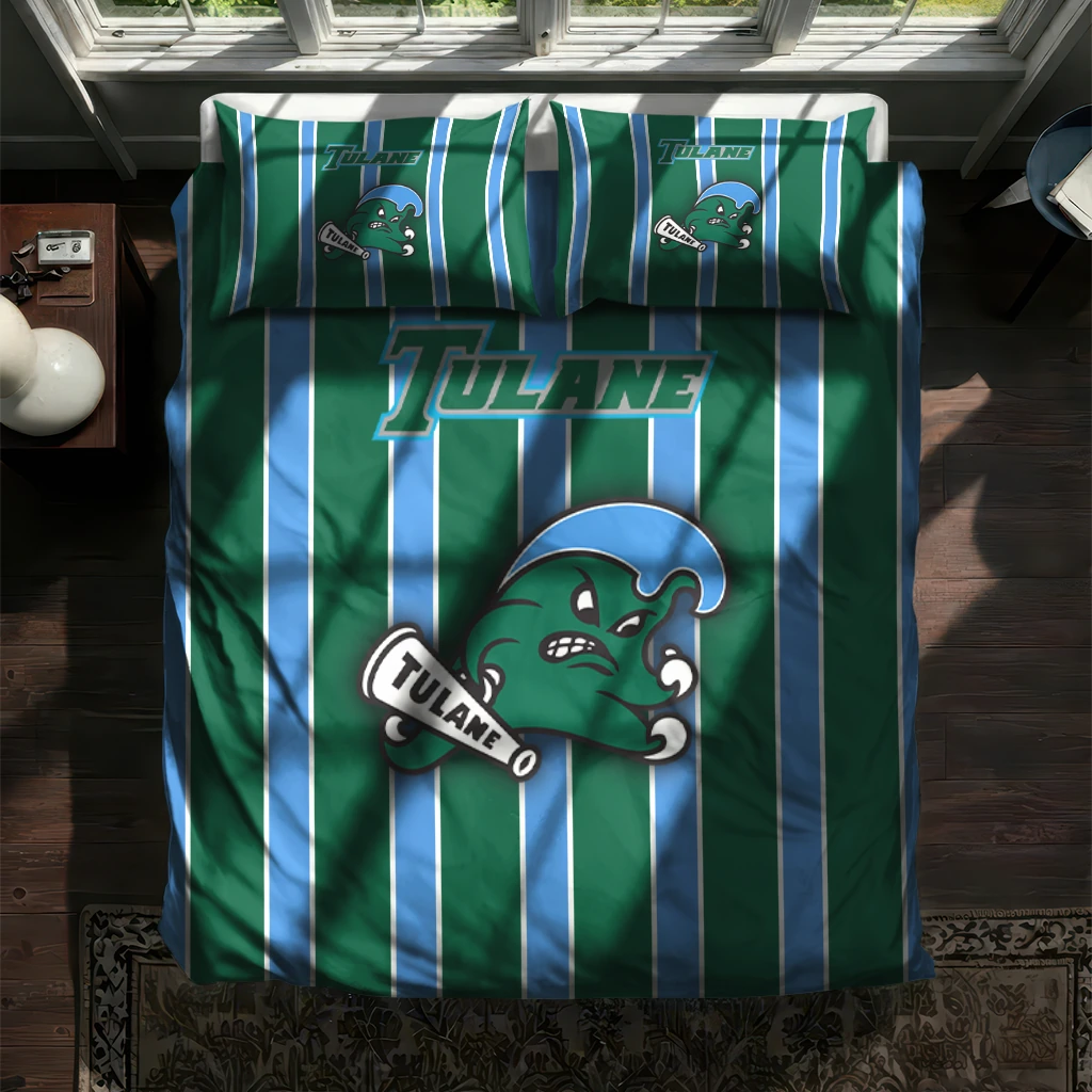 Tulane Green Wave Bedding Set – Stripe Style Green Blue