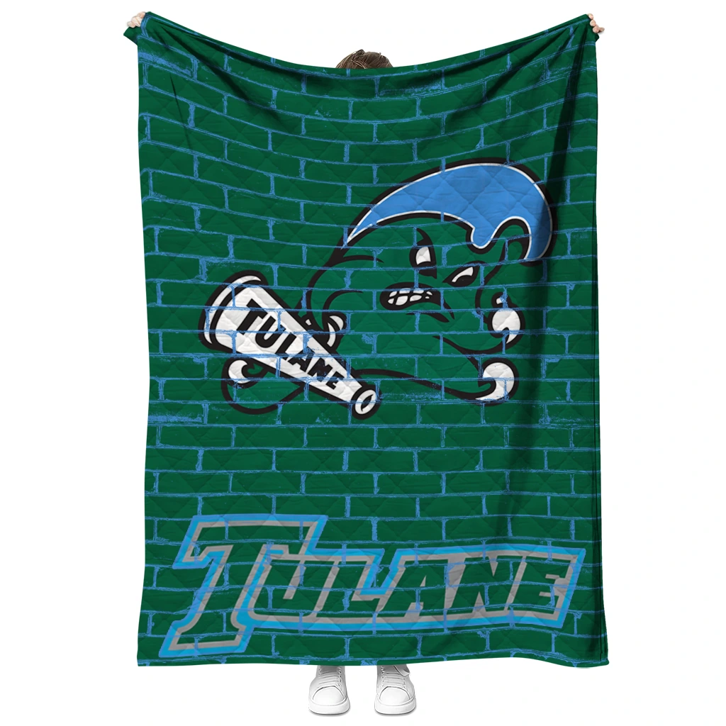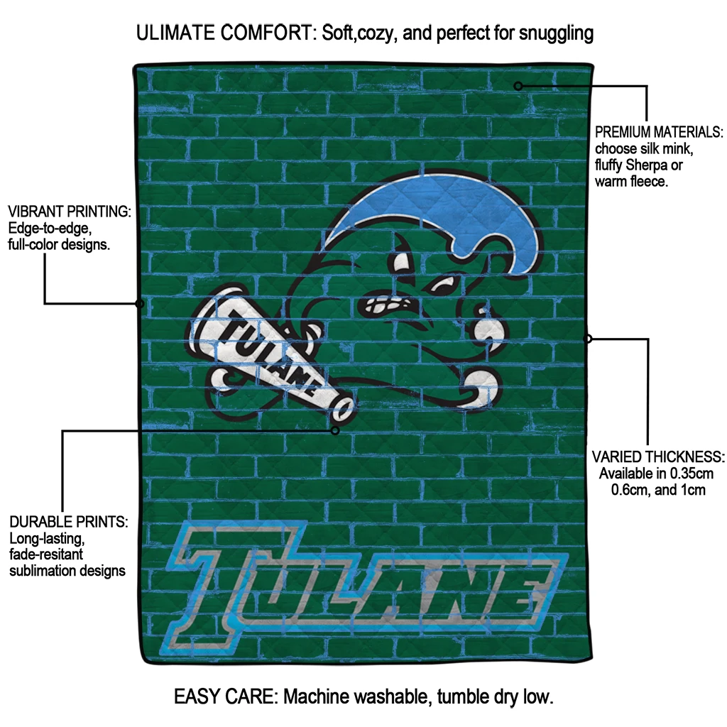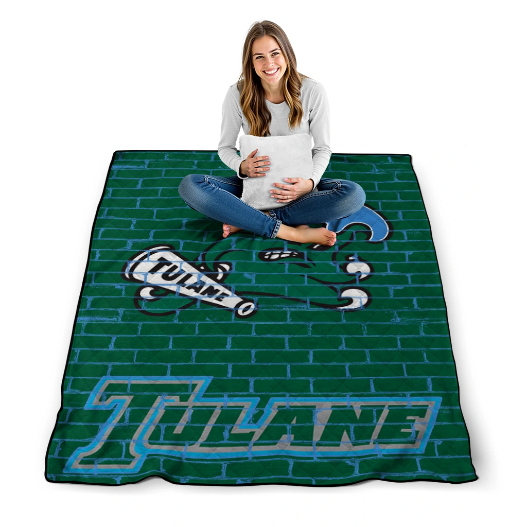 Wrap yourself in warmth and pride with the Tulane Green Wave Brick Grid Green Quilt Blanket from the Tulane Green Wave Blankets collection at Yes That Blanket. Made from 100% premium quilting-weight polyester blended with a touch of microfiber, this quilt offers a smooth, soft finish you’ll love. Choose between two quilting styles—Stipple or Diagonal—and enjoy the comfort of a cotton-filled layer inside that adds extra coziness for every season. The border is available in classic black or white, giving your design a clean, timeless edge.