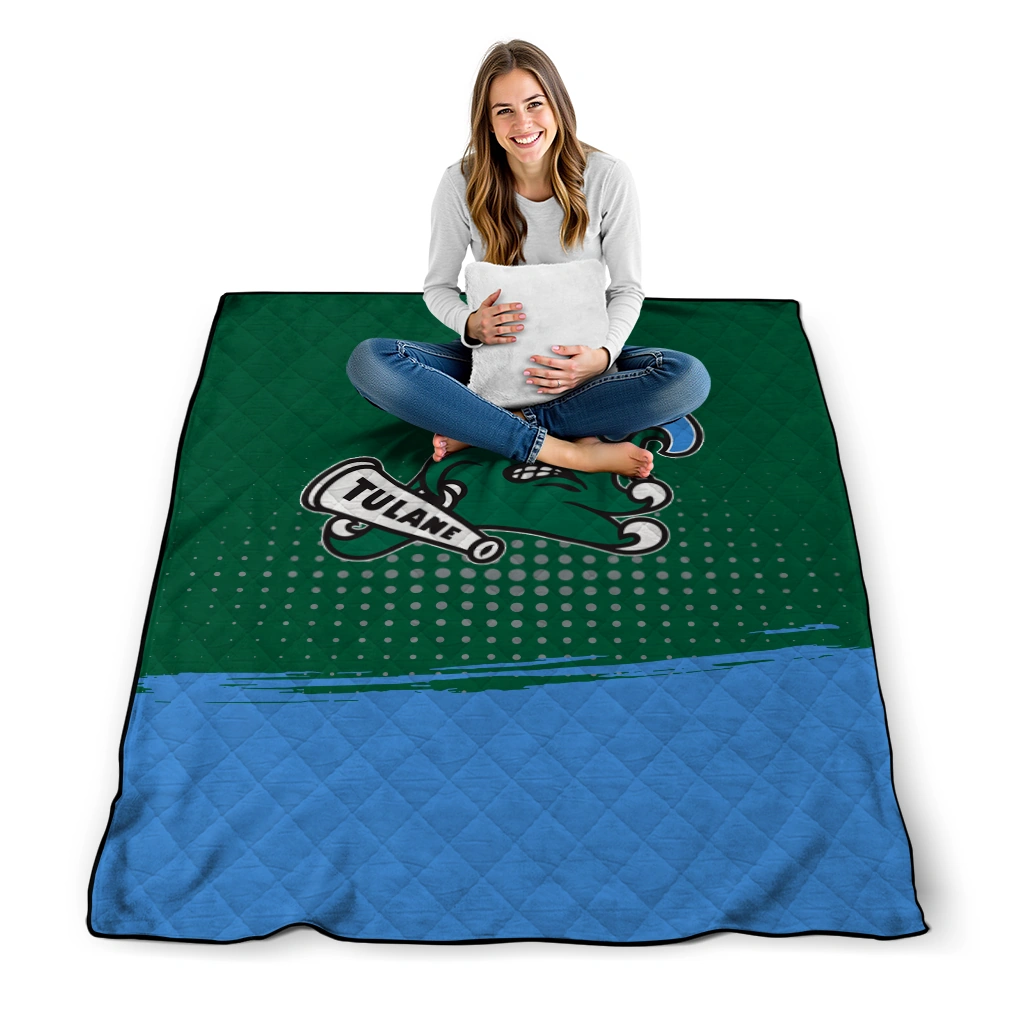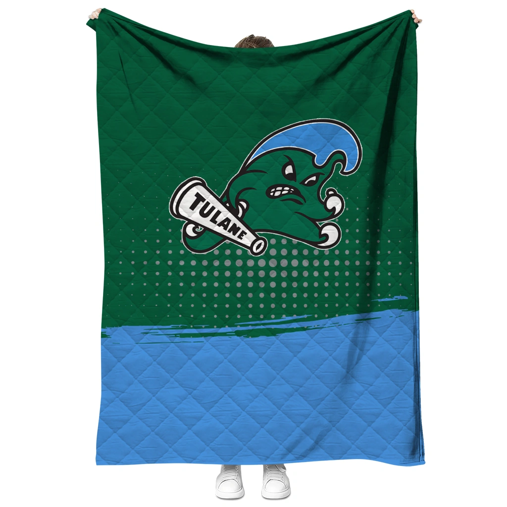 Wrap yourself in warmth and pride with the Tulane Green Wave Dot Illusion Green Quilt Blanket from the Tulane Green Wave Blankets collection at Yes That Blanket. Made from 100% premium quilting-weight polyester blended with a touch of microfiber, this quilt offers a smooth, soft finish you’ll love. Choose between two quilting styles—Stipple or Diagonal—and enjoy the comfort of a cotton-filled layer inside that adds extra coziness for every season. The border is available in classic black or white, giving your design a clean, timeless edge.