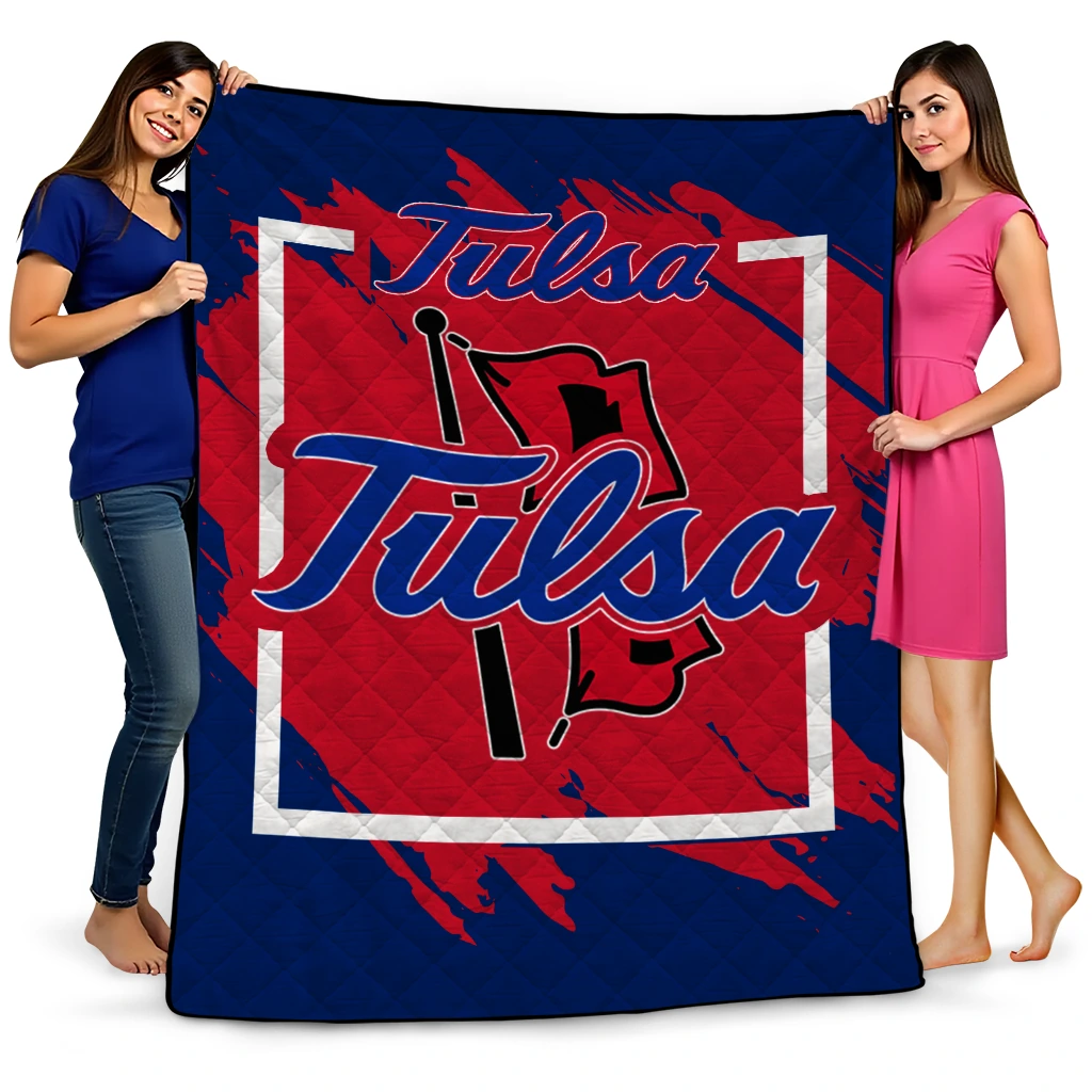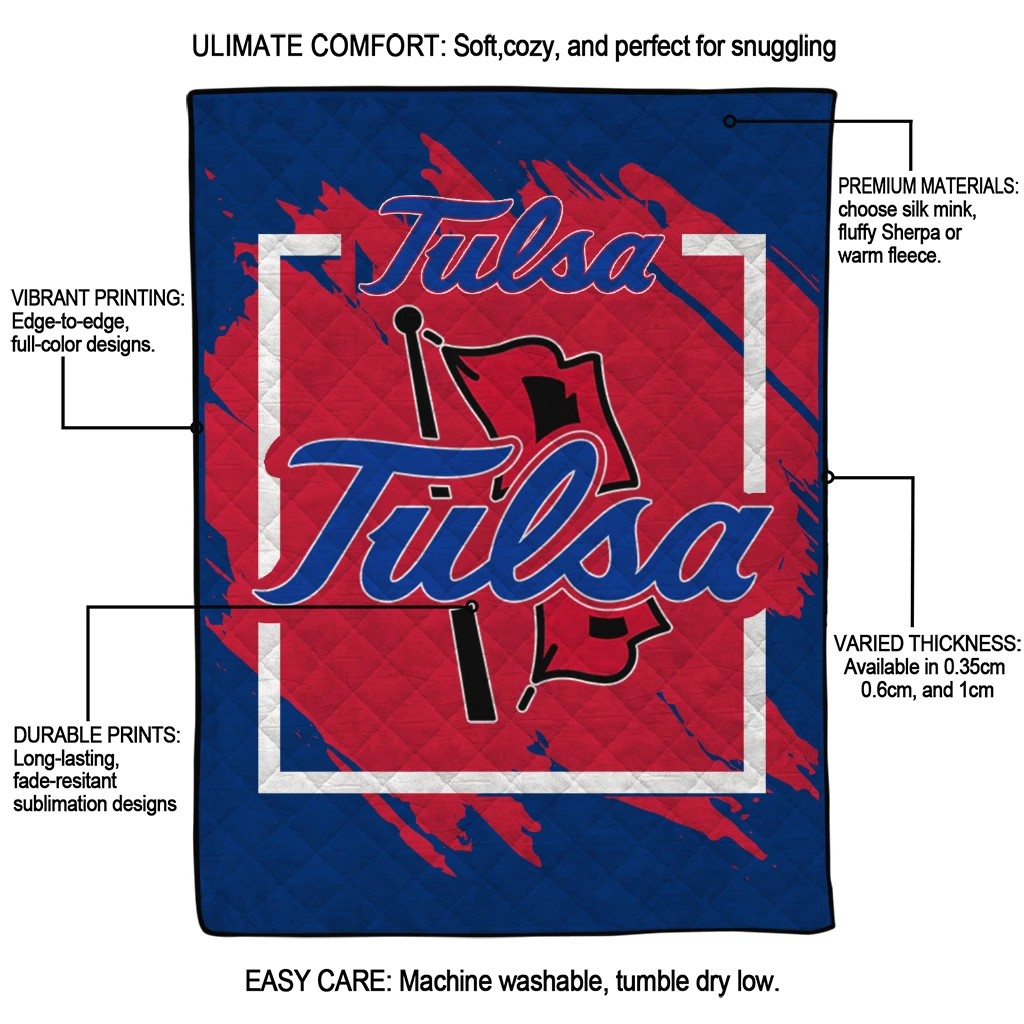 Wrap yourself in warmth and pride with the Tulsa Golden Hurricane Block Border Blue Quilt Blanket from the Tulsa Golden Hurricane Blankets collection at Yes That Blanket. Made from 100% premium quilting-weight polyester blended with a touch of microfiber, this quilt offers a smooth, soft finish you’ll love. Choose between two quilting styles—Stipple or Diagonal—and enjoy the comfort of a cotton-filled layer inside that adds extra coziness for every season. The border is available in classic black or white, giving your design a clean, timeless edge.