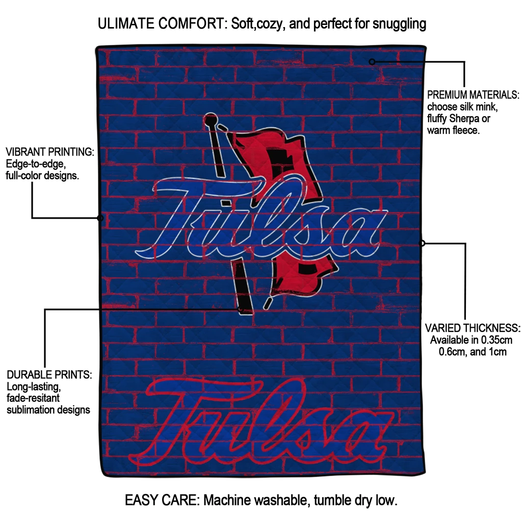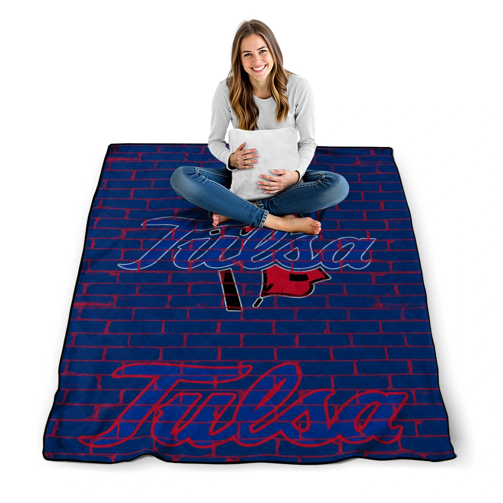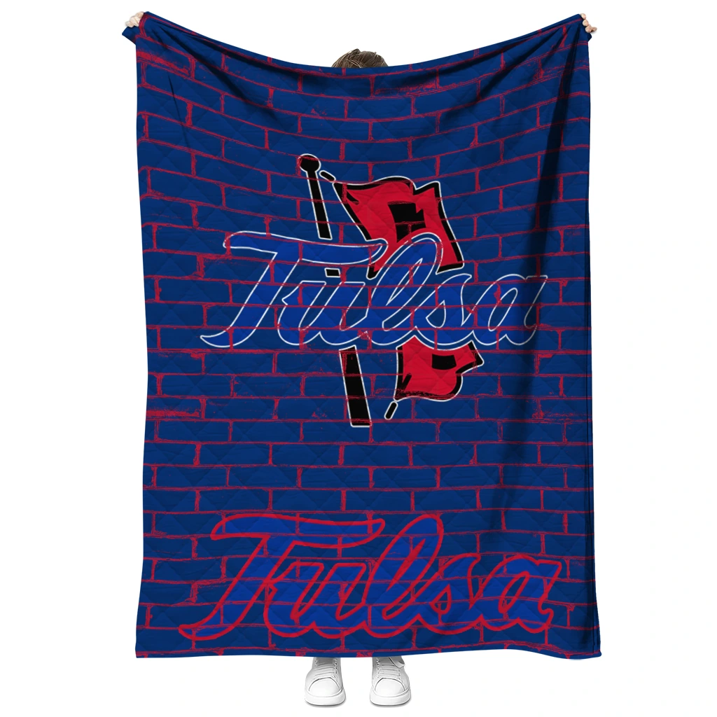 Wrap yourself in warmth and pride with the Tulsa Golden Hurricane Brick Grid Blue Quilt Blanket from the Tulsa Golden Hurricane Blankets collection at Yes That Blanket. Made from 100% premium quilting-weight polyester blended with a touch of microfiber, this quilt offers a smooth, soft finish you’ll love. Choose between two quilting styles—Stipple or Diagonal—and enjoy the comfort of a cotton-filled layer inside that adds extra coziness for every season. The border is available in classic black or white, giving your design a clean, timeless edge.