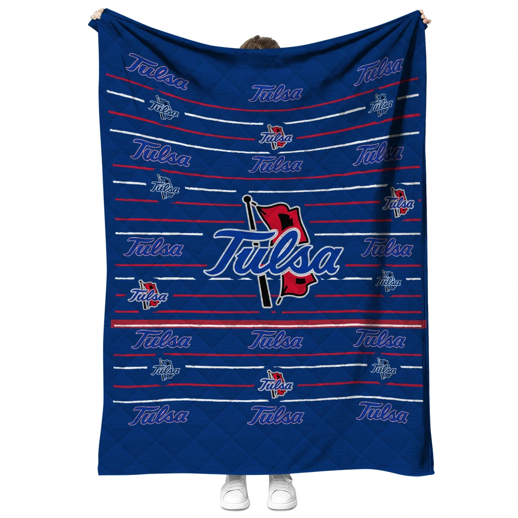 Wrap yourself in warmth and pride with the Tulsa Golden Hurricane Handdrawn Stripes Blue Quilt Blanket from the Tulsa Golden Hurricane Blankets collection at Yes That Blanket. Made from 100% premium quilting-weight polyester blended with a touch of microfiber, this quilt offers a smooth, soft finish you’ll love. Choose between two quilting styles—Stipple or Diagonal—and enjoy the comfort of a cotton-filled layer inside that adds extra coziness for every season. The border is available in classic black or white, giving your design a clean, timeless edge.
