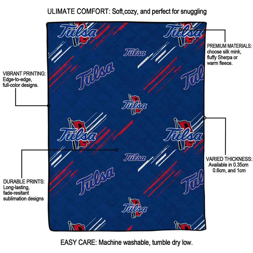 Wrap yourself in warmth and pride with the Tulsa Golden Hurricane Sketch Lines Blue Quilt Blanket from the Tulsa Golden Hurricane Blankets collection at Yes That Blanket. Made from 100% premium quilting-weight polyester blended with a touch of microfiber, this quilt offers a smooth, soft finish you’ll love. Choose between two quilting styles—Stipple or Diagonal—and enjoy the comfort of a cotton-filled layer inside that adds extra coziness for every season. The border is available in classic black or white, giving your design a clean, timeless edge.