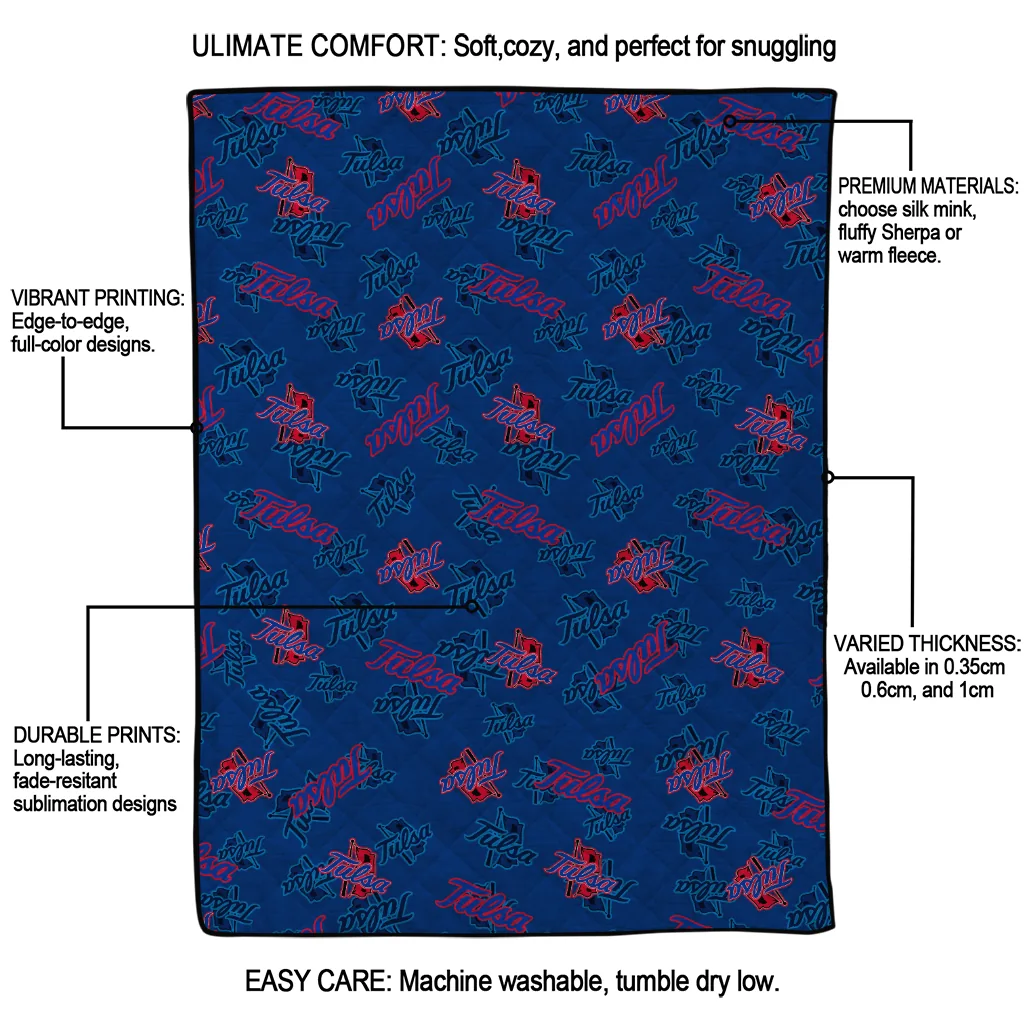 Wrap yourself in warmth and pride with the Tulsa Golden Hurricane Solid Classic Blue Quilt Blanket from the Tulsa Golden Hurricane Blankets collection at Yes That Blanket. Made from 100% premium quilting-weight polyester blended with a touch of microfiber, this quilt offers a smooth, soft finish you’ll love. Choose between two quilting styles—Stipple or Diagonal—and enjoy the comfort of a cotton-filled layer inside that adds extra coziness for every season. The border is available in classic black or white, giving your design a clean, timeless edge.