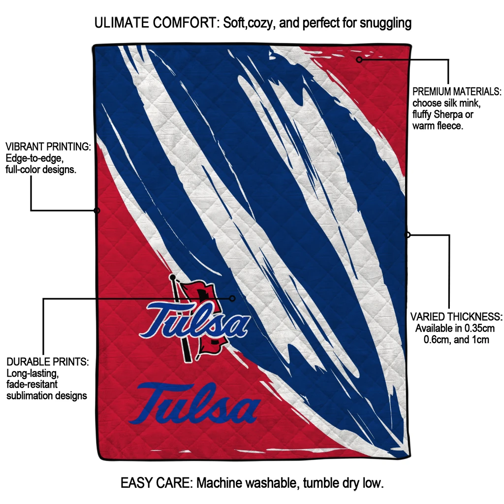 The Tulsa Golden Hurricane Stroke Art Blue White Quilt Blanket is more than a blanket—it’s everyday comfort, thoughtfully made. Crafted from premium quilting fabric with a soft microfiber touch, it offers a smooth hand-feel and lasting coziness. Layered quilting with a cotton-filled core provides adaptable warmth across seasons while maintaining a clean, tailored look on your bed or sofa.