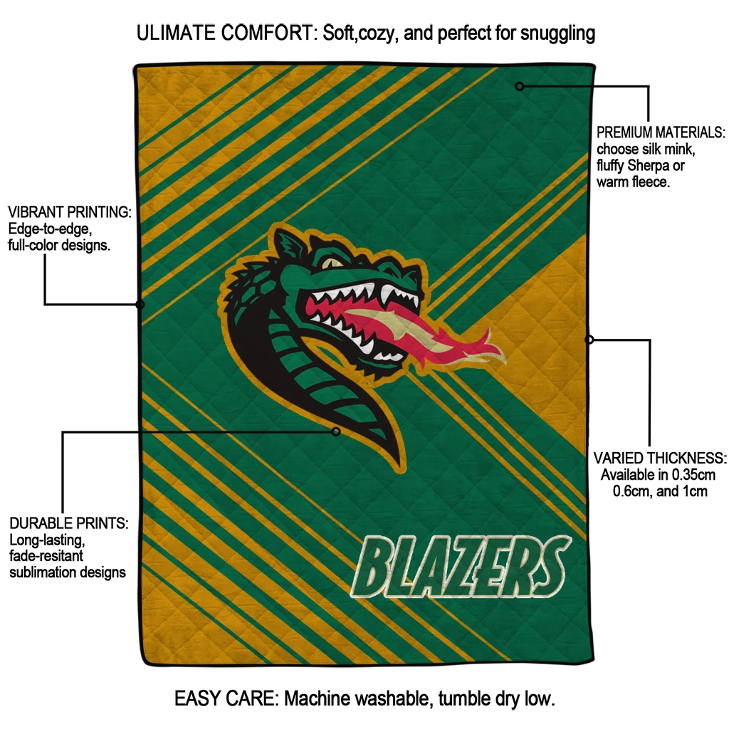 Wrap yourself in warmth and pride with the UAB Blazers Arrow Layers Green Quilt Blanket from the UAB Blazers Blankets collection at Yes That Blanket. Made from 100% premium quilting-weight polyester blended with a touch of microfiber, this quilt offers a smooth, soft finish you’ll love. Choose between two quilting styles—Stipple or Diagonal—and enjoy the comfort of a cotton-filled layer inside that adds extra coziness for every season. The border is available in classic black or white, giving your design a clean, timeless edge.