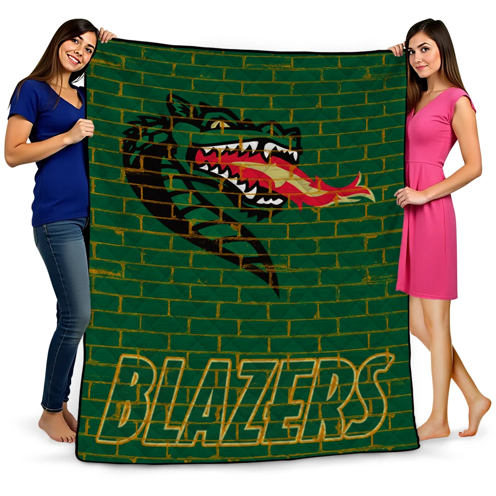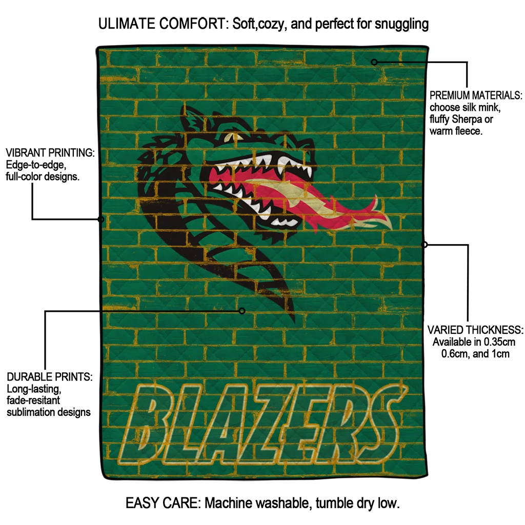Wrap yourself in warmth and pride with the UAB Blazers Brick Grid Green Quilt Blanket from the UAB Blazers Blankets collection at Yes That Blanket. Made from 100% premium quilting-weight polyester blended with a touch of microfiber, this quilt offers a smooth, soft finish you’ll love. Choose between two quilting styles—Stipple or Diagonal—and enjoy the comfort of a cotton-filled layer inside that adds extra coziness for every season. The border is available in classic black or white, giving your design a clean, timeless edge.