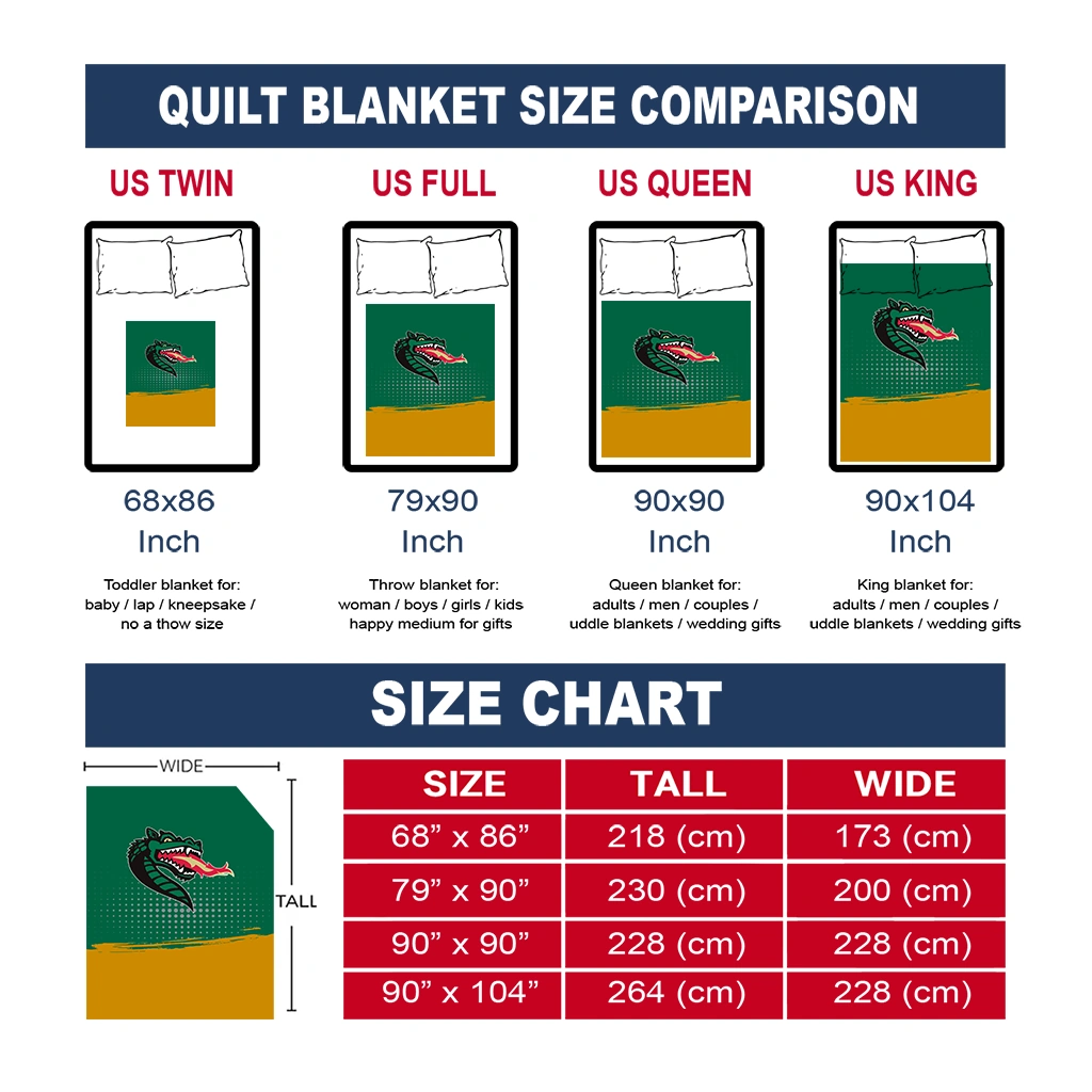 Wrap yourself in warmth and pride with the UAB Blazers Dot Illusion Green Quilt Blanket from the UAB Blazers Blankets collection at Yes That Blanket. Made from 100% premium quilting-weight polyester blended with a touch of microfiber, this quilt offers a smooth, soft finish you’ll love. Choose between two quilting styles—Stipple or Diagonal—and enjoy the comfort of a cotton-filled layer inside that adds extra coziness for every season. The border is available in classic black or white, giving your design a clean, timeless edge.