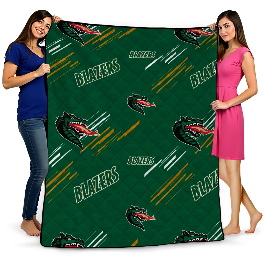 Wrap yourself in warmth and pride with the UAB Blazers Sketch Lines Green Quilt Blanket from the UAB Blazers Blankets collection at Yes That Blanket. Made from 100% premium quilting-weight polyester blended with a touch of microfiber, this quilt offers a smooth, soft finish you’ll love. Choose between two quilting styles—Stipple or Diagonal—and enjoy the comfort of a cotton-filled layer inside that adds extra coziness for every season. The border is available in classic black or white, giving your design a clean, timeless edge.