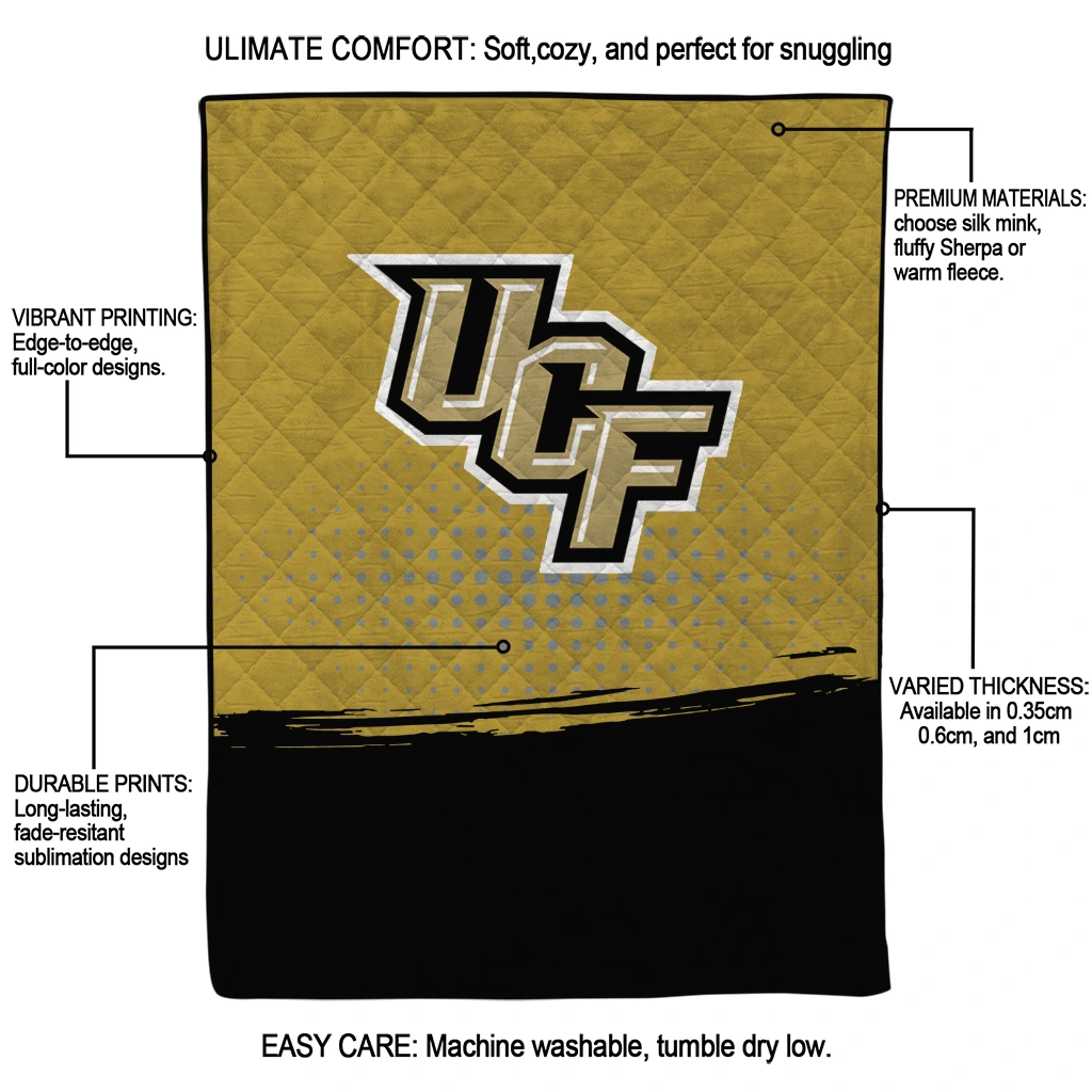 The UCF Knights Dot Illusion Gold Quilt Blanket is more than a blanket—it’s everyday comfort, thoughtfully made. Crafted from premium quilting fabric with a soft microfiber touch, it offers a smooth hand-feel and lasting coziness. Layered quilting with a cotton-filled core provides adaptable warmth across seasons while maintaining a clean, tailored look on your bed or sofa.